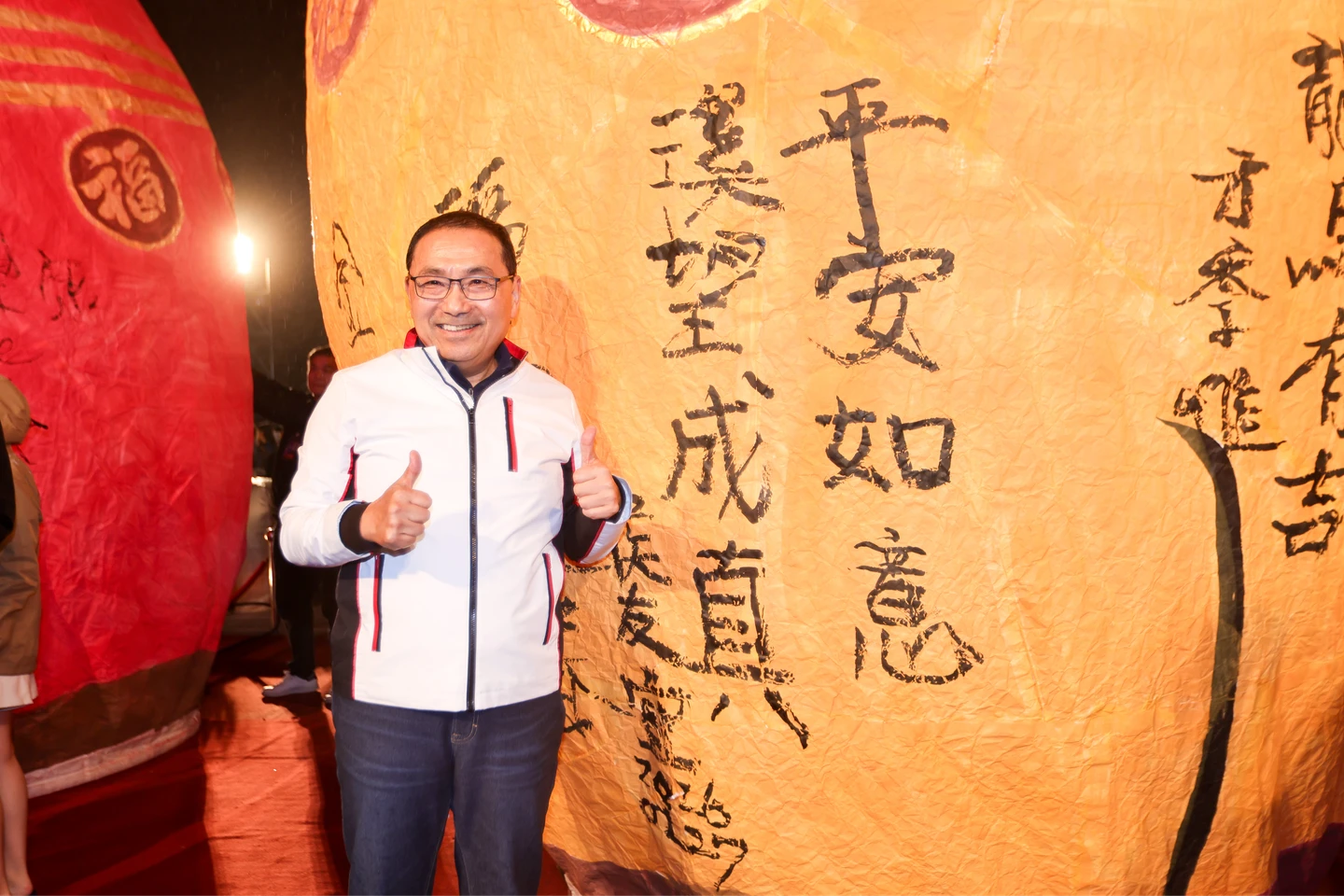 【記者林志青/新北報導】「2026新北市平溪天燈節」今晚在平溪國中熱鬧登場,吸引國內外旅客熱情參與,可惜天公不作美,平溪入夜後細雨綿綿。新北市長侯友宜與多位國、內外貴賓,共同施放象徵福氣的3盞巨型福馬主燈,現場並首次展現「馬驫奔騰」光雕秀,祝福大家新的一年「馬祥厚運」。侯友宜也在主燈上以平、溪為首,寫下「平安如意、溪望成真」的願望,祝福全台灣都能平安如意、希望都能成真,大家圓圓滿滿。