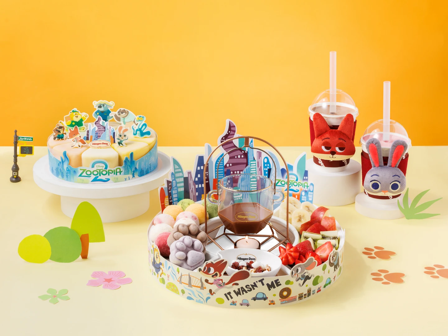 哈根達斯也將「動物方城市冰淇淋蛋糕 7英吋2,480元」搬上餐桌,冰淇淋包含香草、夏威夷果仁、芒果覆盆子與淇淋巧酥四種人氣口味。隨著《動物方城市2》電影上映,哈根達斯同步推出3款限量「動物方城市互動小卡」,包含人氣主角尼克與茱蒂,凡購買動物方城市冰淇淋火鍋,就可隨機獲得乙張;購買動物方城市冰淇淋蛋糕,即可隨機獲得2張。