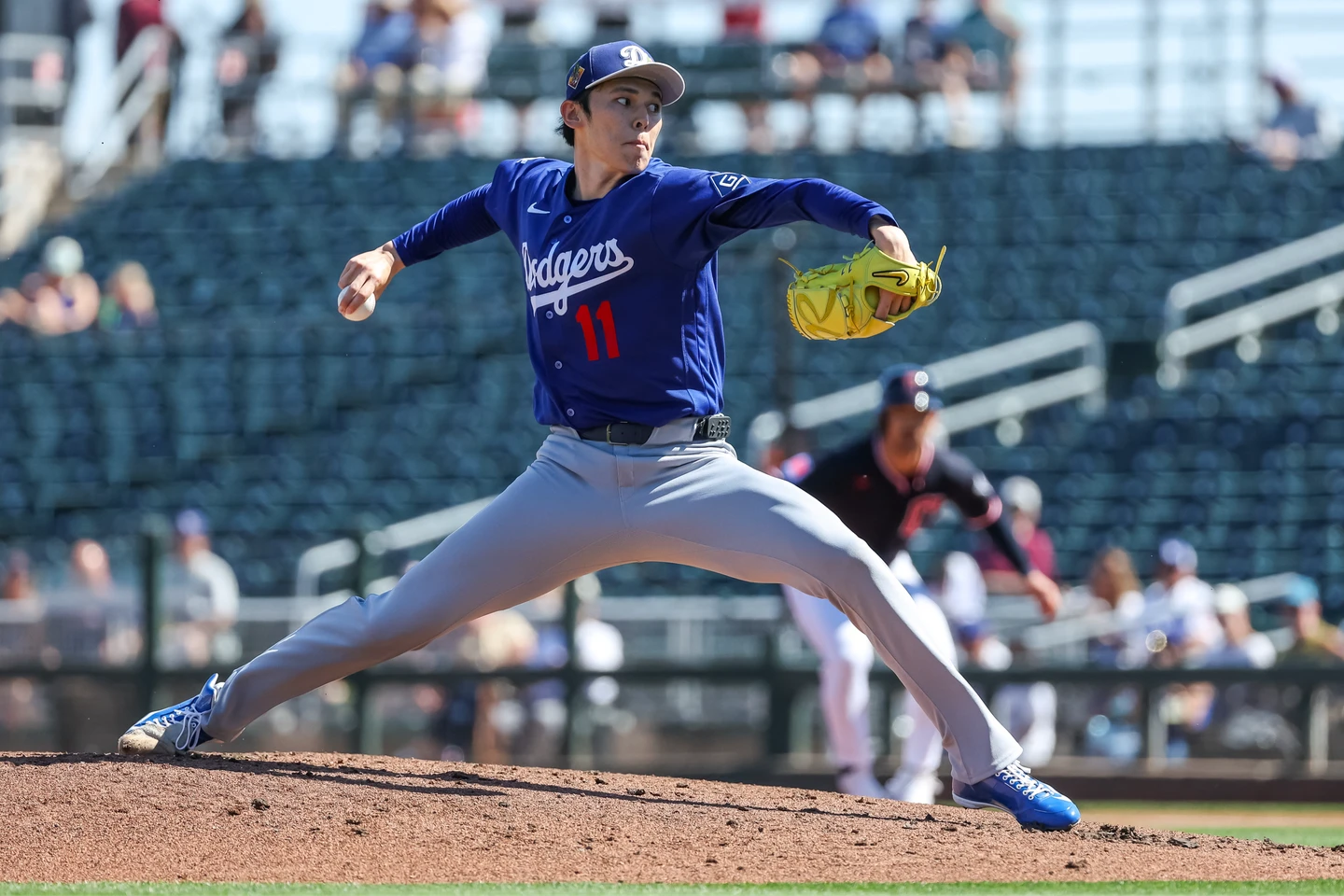 不過,今天道奇「日籍三本柱」之一的佐佐木朗希原本預計要投滿5局,但在與皇家隊的熱身賽過程中發現小腿險些抽筋的突發狀況,最終在特殊規則的情況下總計用69球投3.1局,投出5次三振、4次四壞球保送,被敲3支安打、失2分,最快球速99.5英里(約160.1公里)。