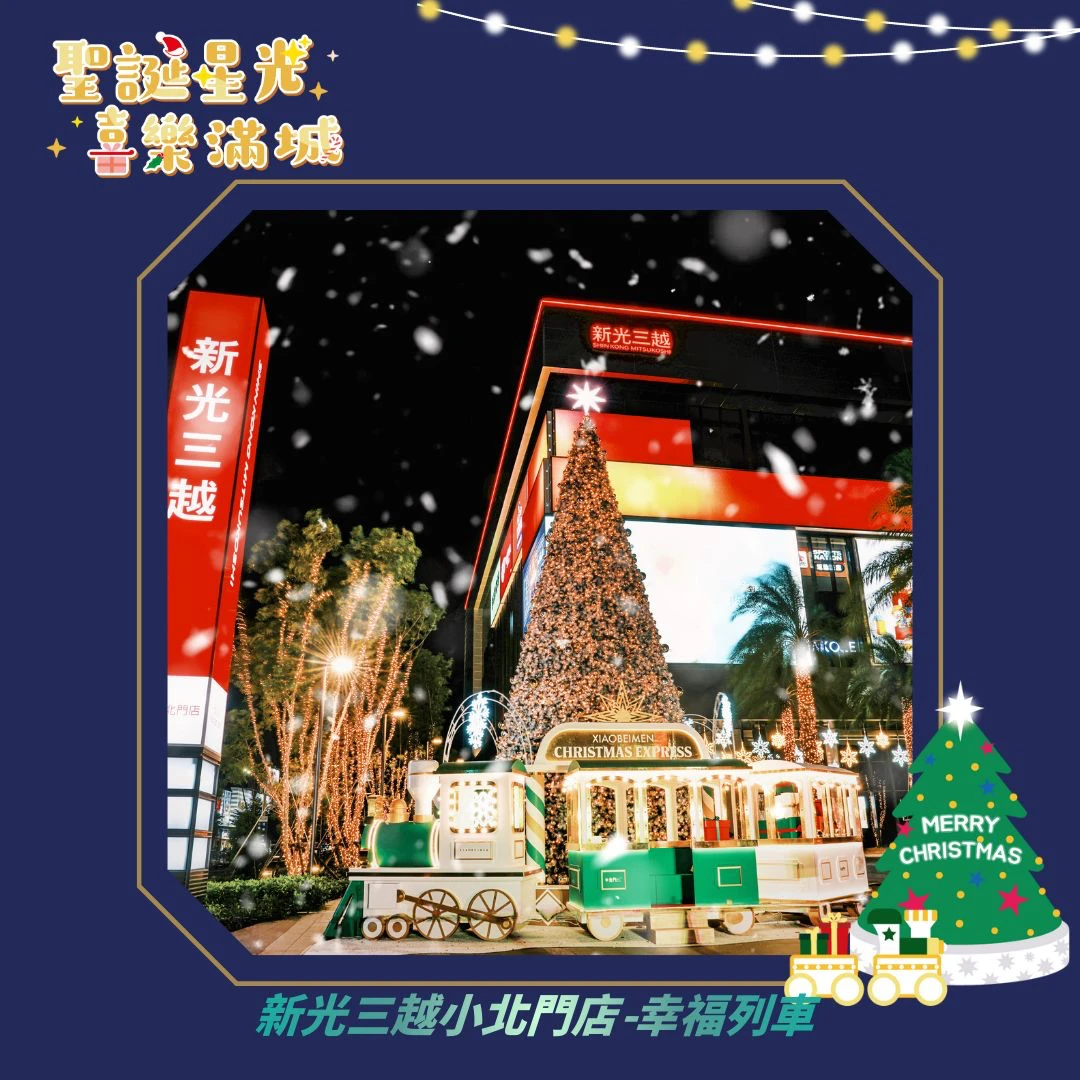 新光三越台南新天地打造南台灣最高的30米「閃耀之樹」,以百萬顆燈泡呈現光之饗宴,室內則掀起「星光夢境」雪花秀,吸引人潮在大雪紛飛的場景中拍照打卡,成為耶誕不可錯過的新地標;甫開幕的新光三越台南小北門店則以「耶誕暖心列車」為主題,打造12米高聖誕樹結合實體列車裝置,會員甚至可免費搭乘小火車。