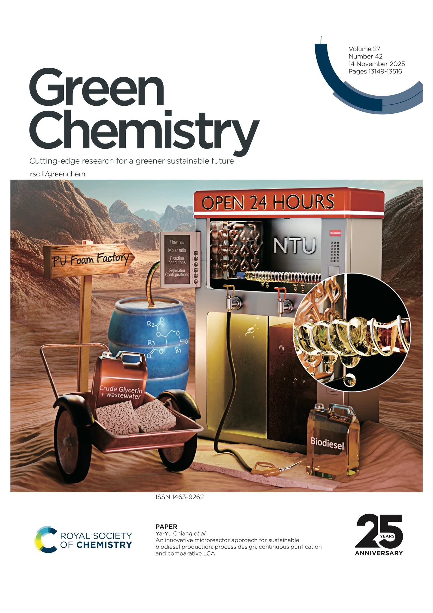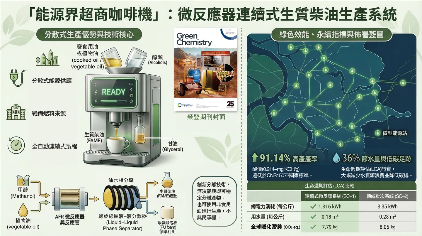 此項研究成果,在去年12月獲選為國際頂尖期刊《Green Chemistry》第42期的封面專題。