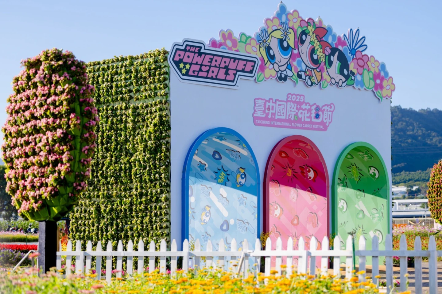 台中市府觀旅局長陳美秀表示,今年花毯節不僅有飛天小女警的家、市政廳等經典動畫場景,現場也可與花花、泡泡、毛毛,以及尤教授、小鎮村市長、粗暴小子、「他」等角色立牌「不期而遇」,讓大小朋友走入動畫場景中拍照留念。