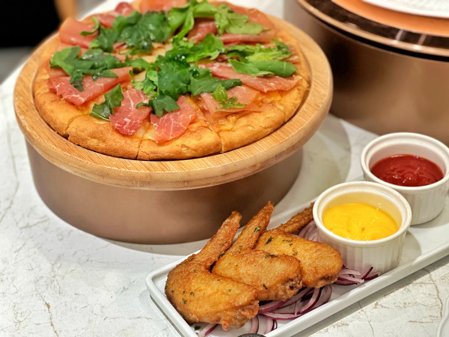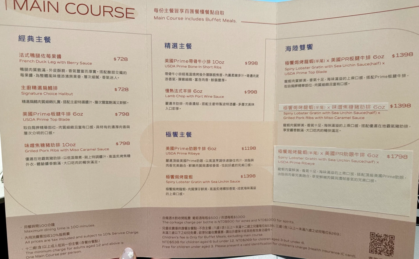 而自助餐檯則多達80樣餐點,從主廚沙拉、開胃前菜、熱配菜、Pizza、義大利麵、燉飯、甜點、飲品通通有,在這裡「還吃得到旭集冰淇淋」,提供百香果、濃抹茶、巧克力等12種口味任你吃,最低728元起就能吃到飽。