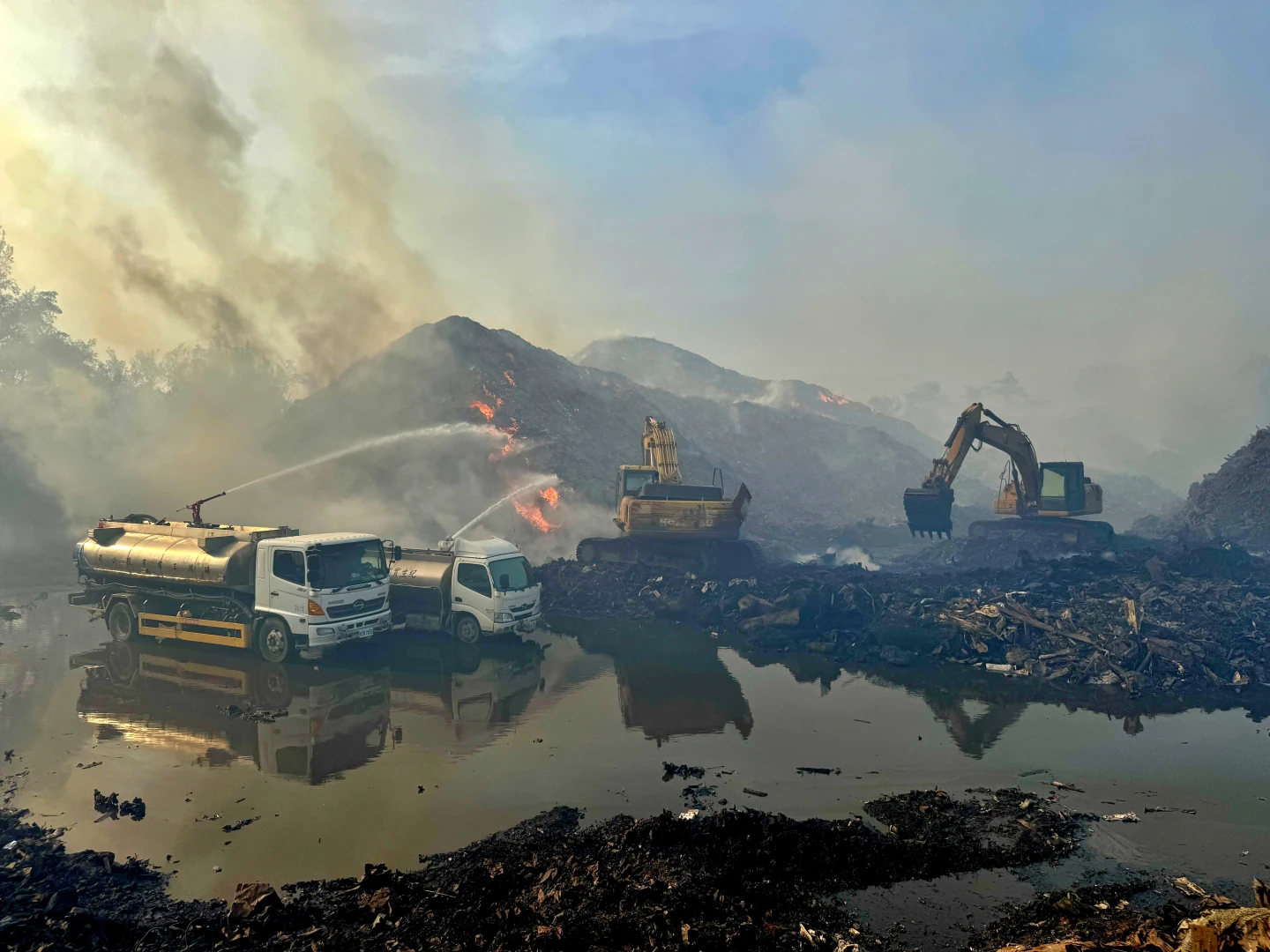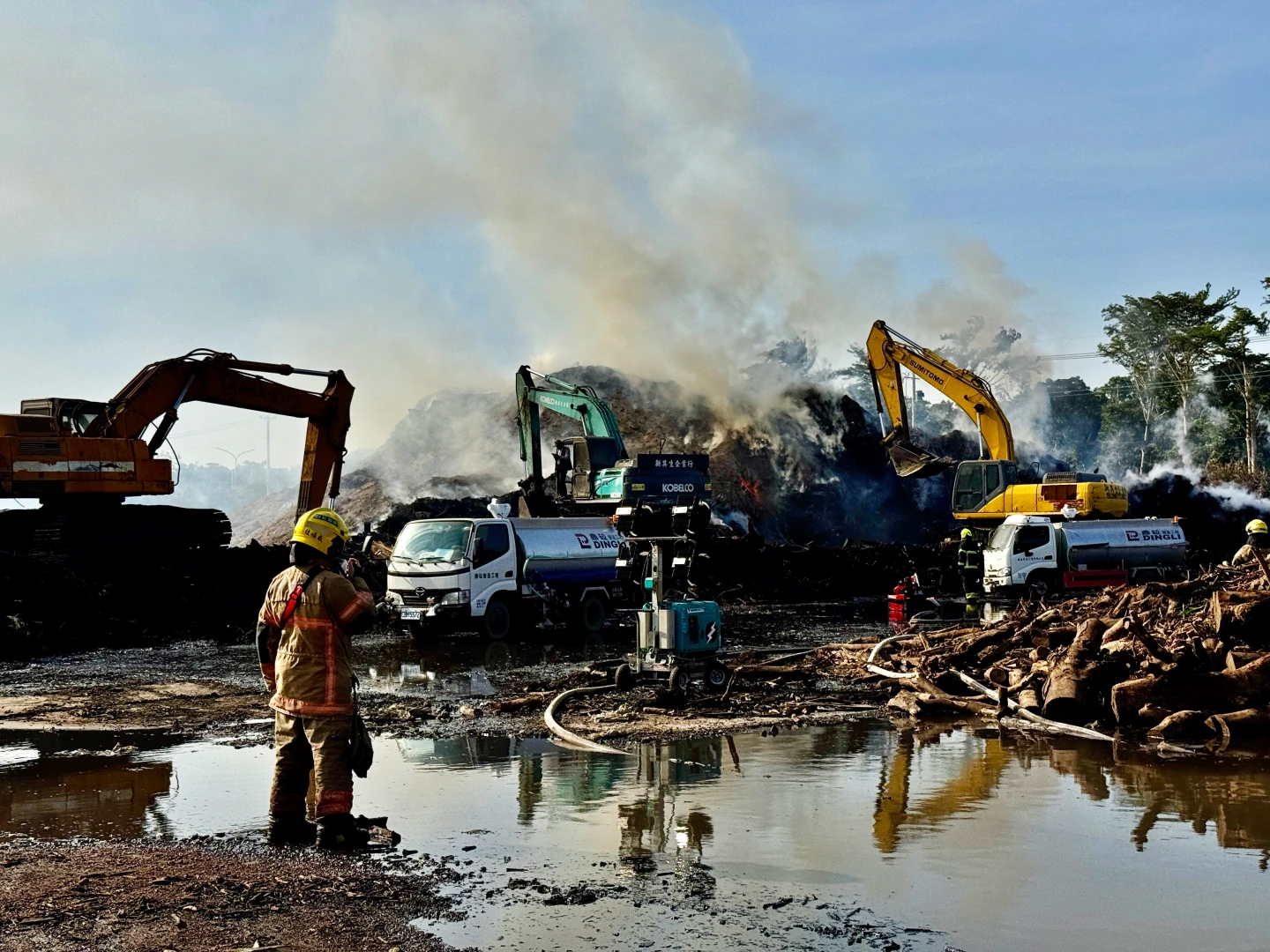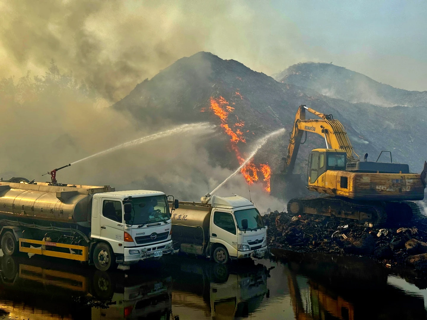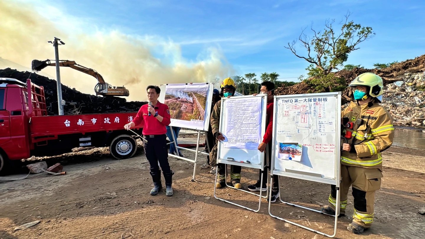 【記者王志弘/台南報導】台南烏樹林廢棄物暫置場日前發生大火,今邁入第5天,仍不斷飄散濃煙,持續殘火處理中,引發外界質疑。南市環保局長許仁澤親上火線說明,火場一度達7層樓高,透過「開挖、降溫、移置」3步驟,已展成效,將引水嘉南大圳來淹沒火場底部,加速排除,搶在10天內完全熄滅。現場持續監測空品,請民眾不必過度恐慌。