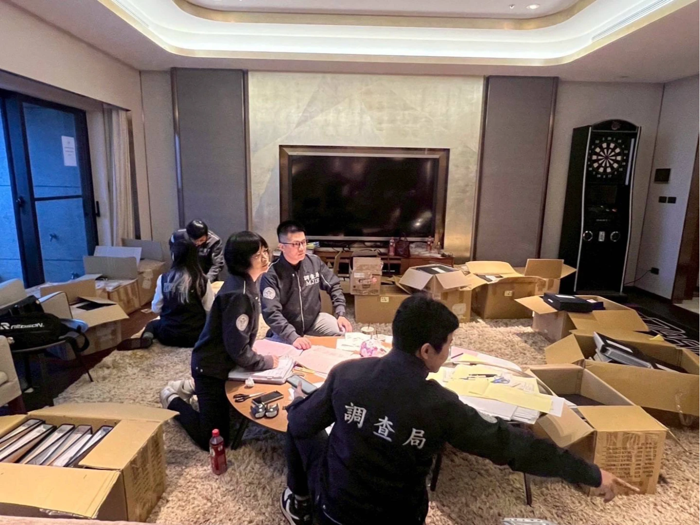 承辦檢察官數度召開專案會議,研析蒐集太子集團在國內不法事證,今指揮台北市調查處、刑事警察局、台北市政府警察局大安分局、信義分局、內湖分局、高雄市政府警察局刑事警察大隊、小港分局等單位,持法院核發搜索票,搜索該集團在台組織高級幹部、成員之住居所,及天旭國際、聯凡、尼爾創新國際、台灣太子不動產投資公司等47處所,並拘提被告25人、通知證人10人到案說明,全案持續調查釐清中。