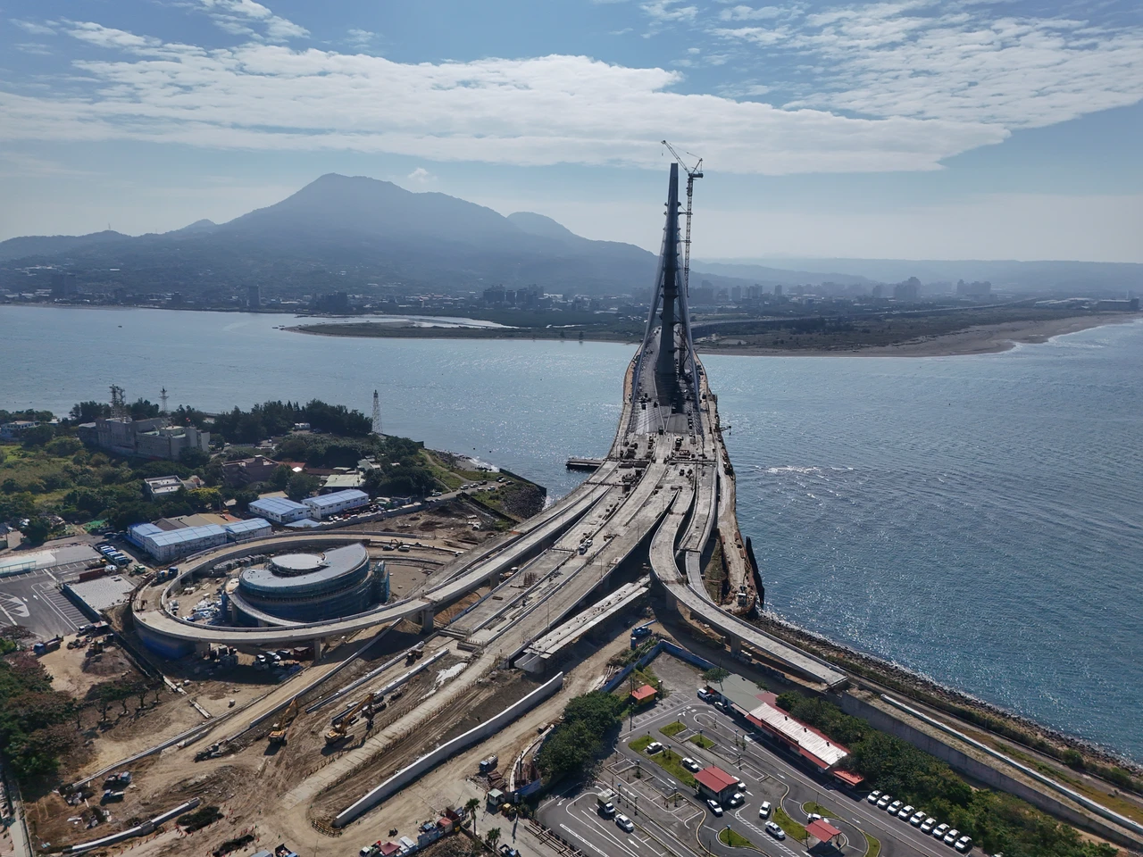 淡江大橋由國際知名建築師札哈·哈蒂(Zaha Hadid)事務所操刀,以「雲門舞集」舞動姿態為靈感,全球跨距最長的單塔不對稱斜張橋-淡江大橋,一直是國人重視的國家重大建設。