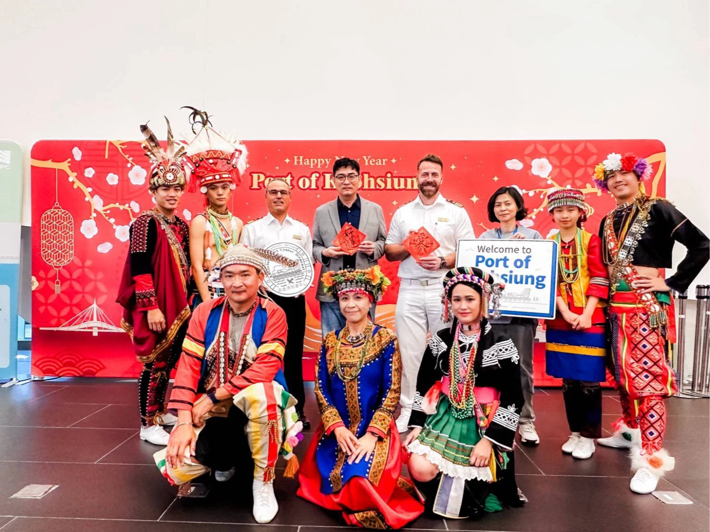 高雄港務分公司說,「愛達女神」是高雄港今年迎接的第2艘首航郵輪,港務分公司特別以噴水儀式迎接,並致贈船長首航紀念牌,表達誠摯歡迎。現場也與高雄市政府海洋局合作,安排傳統原住民迎賓舞蹈表演,迎接1,970位郵輪旅客到訪。
