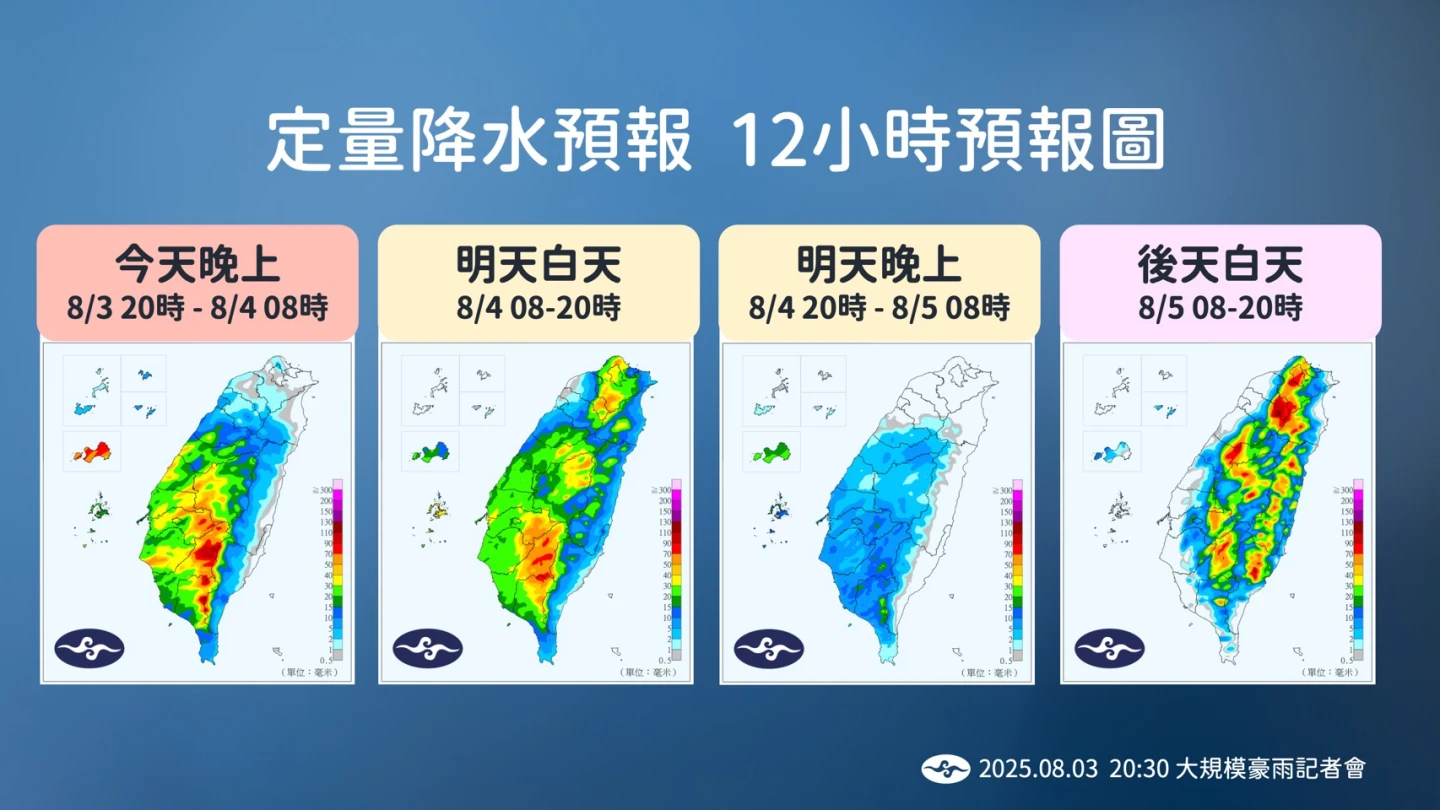 【記者賴昀岫/台北報導】西南氣流對台灣的影響即便減弱,但天氣仍不穩定。中央氣象署表示,未來12小時的降雨趨勢,今晚苗栗以南地區、嘉義以南山區仍有顯著降雨,北台灣在中午過後在熱力作用影響下,同樣會有明顯的午後雷陣雨發展;溫度方面,大台北地區、基隆、宜蘭、花蓮等地,明天可能出現32℃以上高溫,整體天氣預計在周三(6日)之後逐漸回穩。