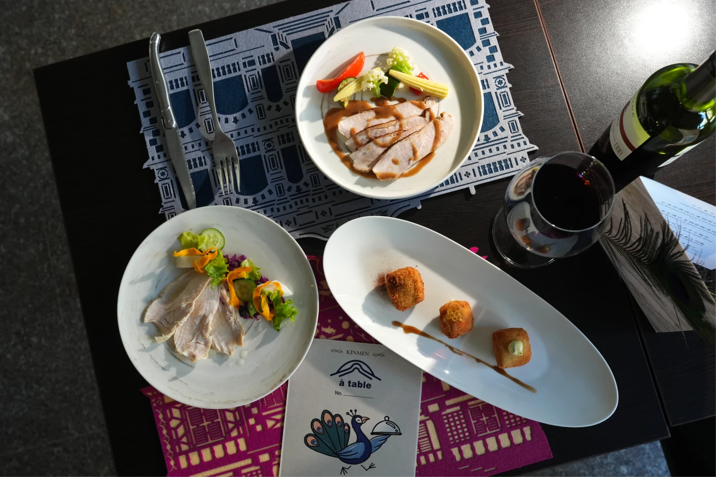 多數人可能從未吃過孔雀肉,不過,在藍孔雀氾濫的金門,部分民眾會將孔雀肉料理食用,而位於金門縣鬧區的法式餐廳「樸食 À table」,更推出一套4人份、售價6000元的孔雀宴料理。