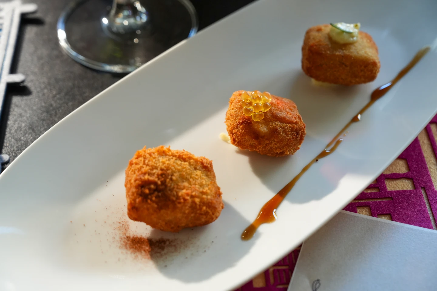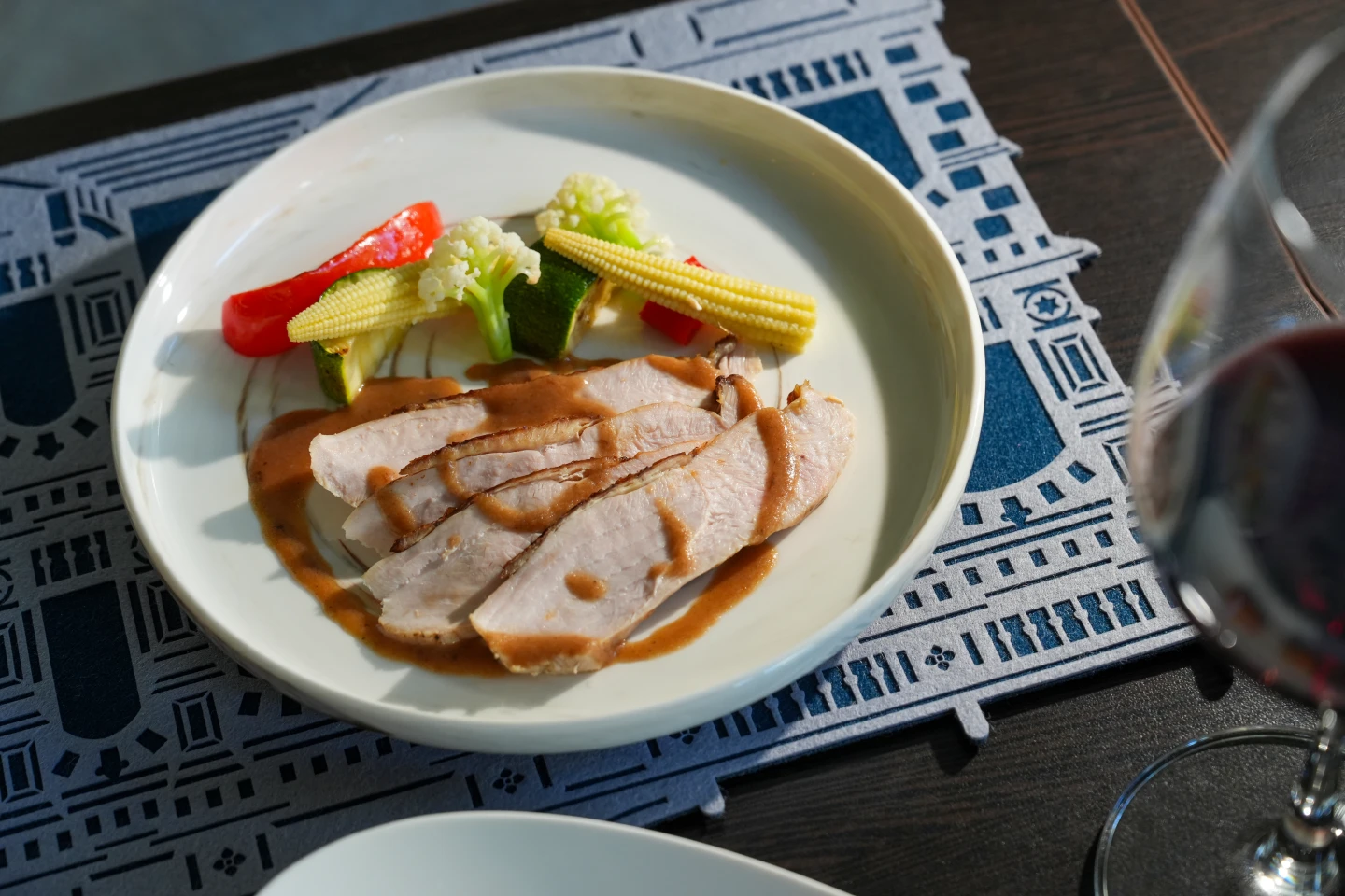 以「炸孔雀肉糜球」來說,口感軟嫩,不但好入口,且油炸恰到好處,不太過油膩也帶有香氣;另一道「水煮孔雀胸沙拉佐高粱油醋」走清爽風味路線,沒有過於濃郁的調味,吃得出肉質比雞胸肉扎實,但相當順口好吃。
