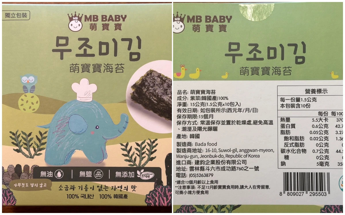 食藥署認證!7款嬰幼兒海苔重金屬超標 已下架超過2.5萬件