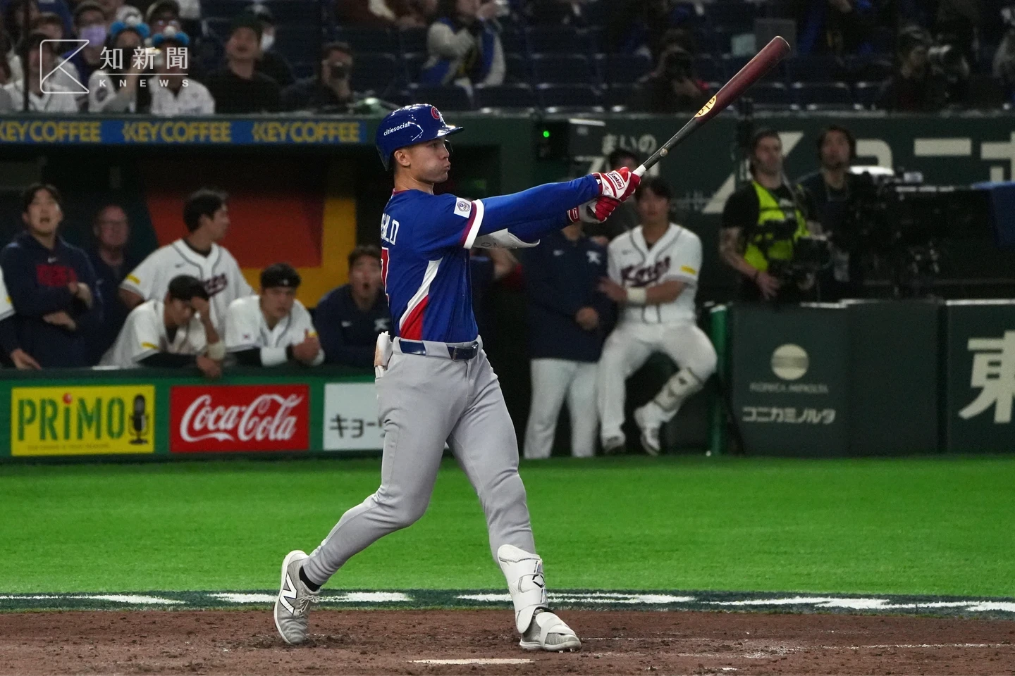 6局上鄭宗哲展現驚人長打力,鎖定球路一棒掃向中左外野看台,陽春全壘打幫助中華隊打破平手僵局,取得 2:1 領先。特派記者林林/東京攝影
