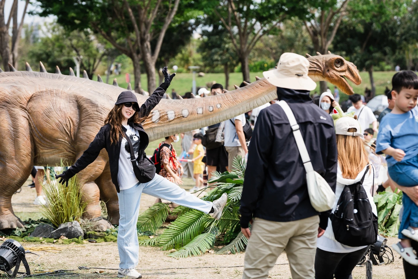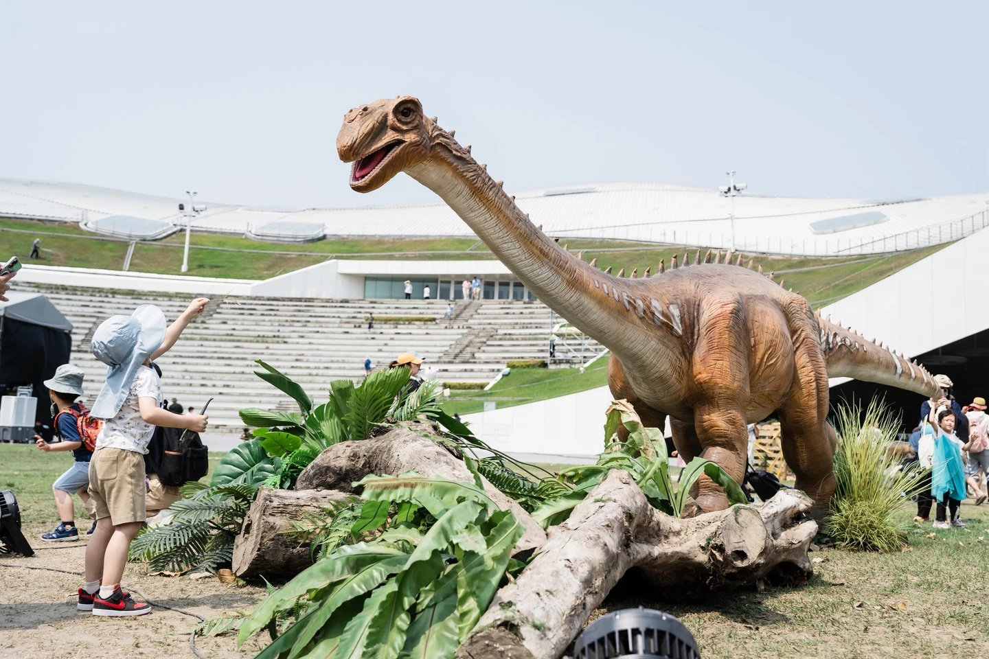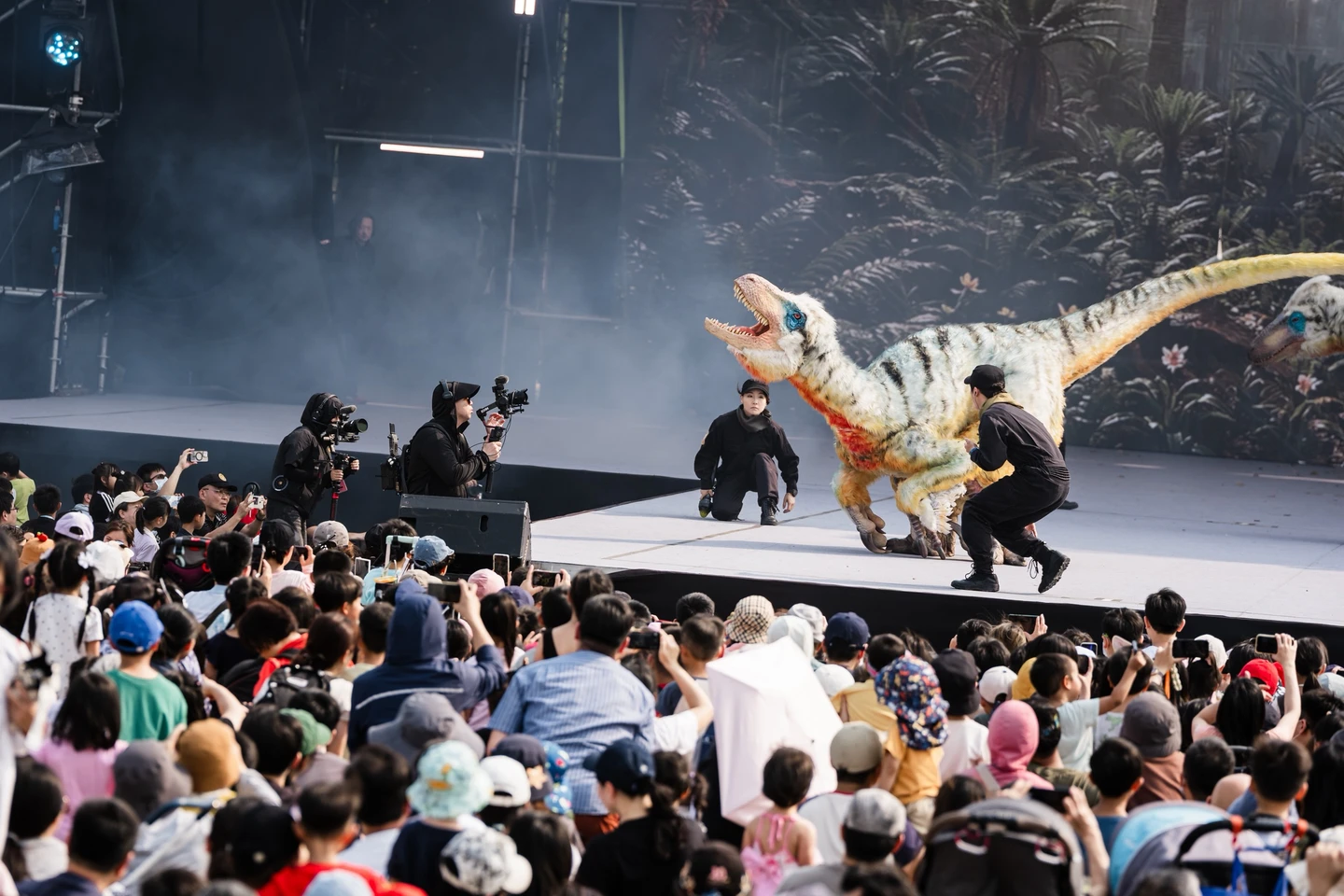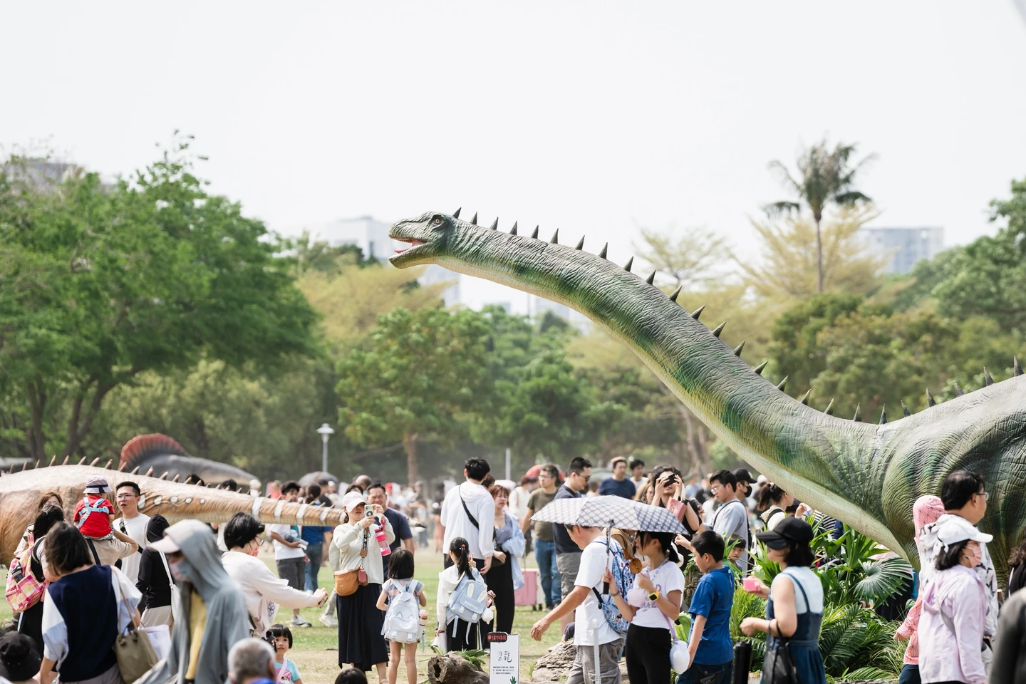 活動現場除主舞台演出外,衛武營公園同步打造「恐龍大草原」,設置多隻擬真機械恐龍,每一次擺頭與眼神掃視都顯得栩栩如生,彷彿走入史前世界,引發現場小朋友驚呼連連,群眾搶著同框打卡,成為高雄連假最熱門景點。