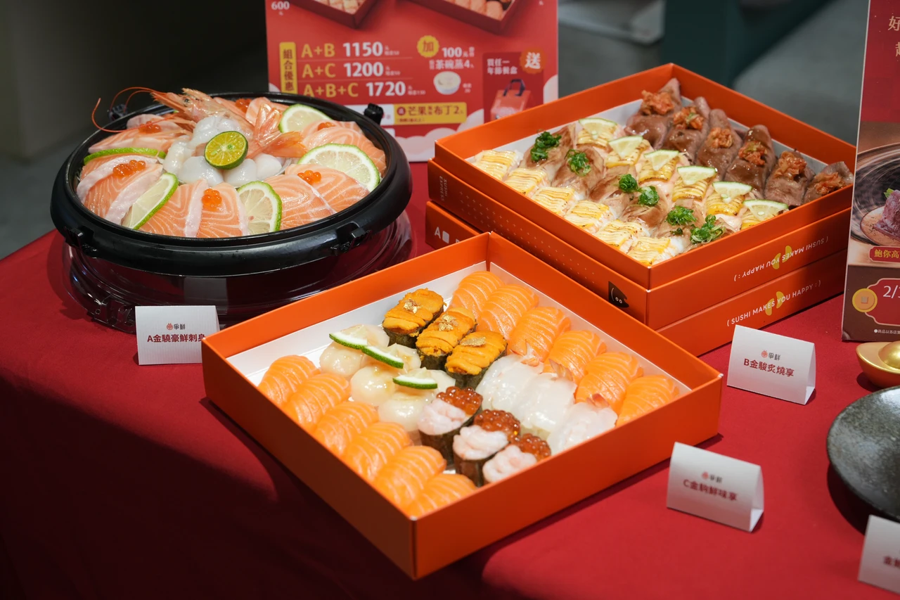 台灣壽司郎期間限定「豐盛鮨聚」自2月4日起至2月22日登場,首推「豪滿足奢華海鮮拼盤420元」,精選極上鮪魚搭配鮪魚泥、生鮭魚佐以鮮切鮭魚丁、紅雪蟹肉結合蟹膏、甜蝦仁配鯡魚卵、小黃瓜卷加上鮭魚卵;「鹿兒島縣產紅魽魚90元」精選日本「海の匠」品牌的紅魽;「炙燒喜知次60元」選用貴有「海中紅寶石」美譽的帶皮喜知次,於店內炙燒,逼出油脂香氣,並賦予魚皮焦香。