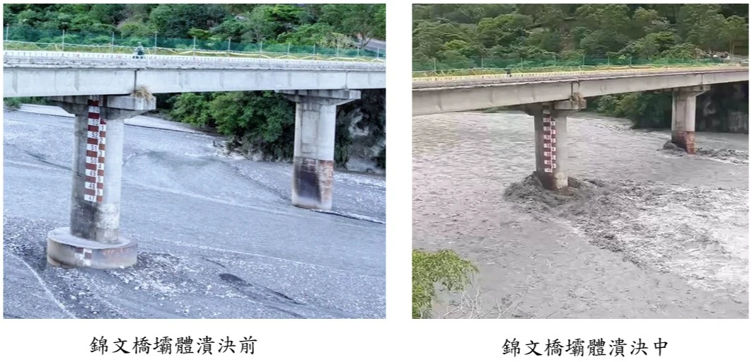 秀林鄉公所發出公告,因燕子口堰塞湖壩體溢流水道水量擴大,並持續沖刷壩體,恐造成壩體破壞或潰決。為確保安全,即日起錦文橋封橋,請民眾配合現場管制,切勿進入立霧溪下游河道區域活動。