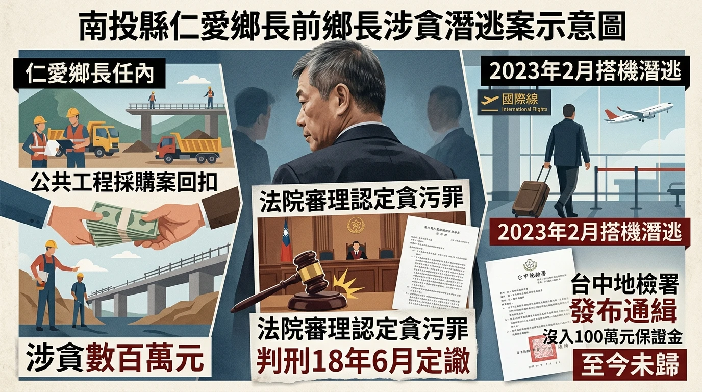 棄保潛逃再+1!南投前鄉長涉貪判囚18年半定讞 早搭機出境遭通緝