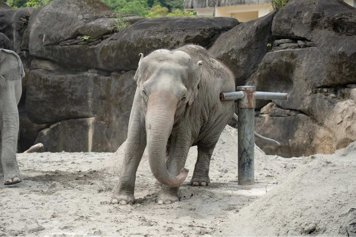為了提升現代動物園的動物福祉而整修舊有場地,保育員們這回安排亞洲象和非洲象當鄰居,除了讓亞洲象使用豐富化的場地環境,也藉由暫時的相鄰生活增進大象間的社交刺激。