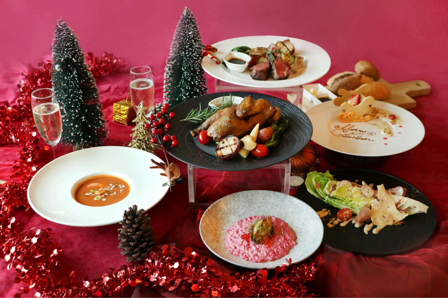 館內buffet「文華Café」於2025年12月25日至28日推出期間限定全自助式聖誕饗宴,除可無限暢快朵頤海鮮吧,還有現切爐烤肋眼牛排與烤火雞,以及聖誕主題甜點吧,另再加贈每位成人「波士頓焗烤龍蝦」乙份,每位3,380元+10%。