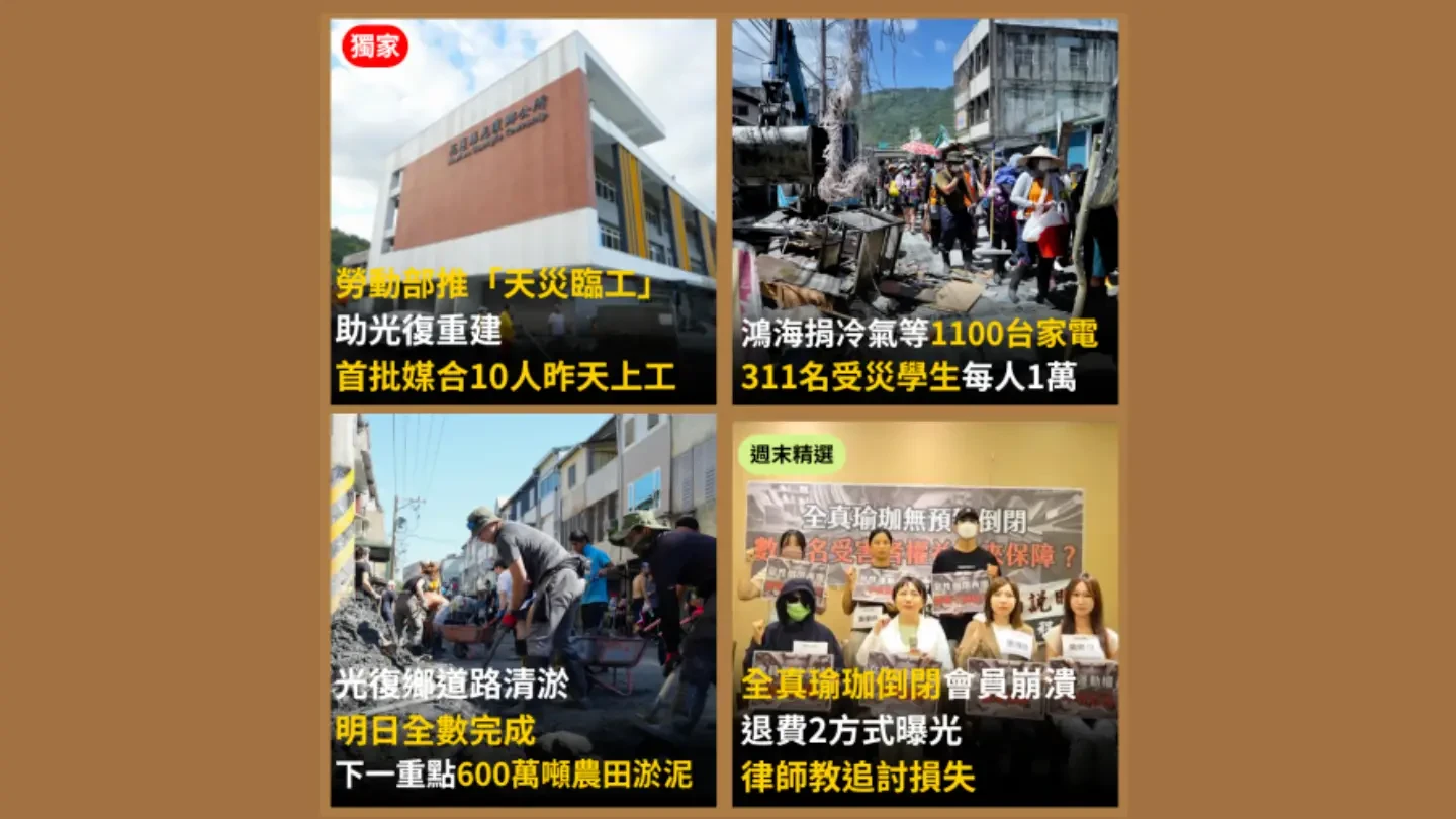 今日精選|勞動部推「天災臨工」助光復重建/律師教全真瑜珈會員追討損失
