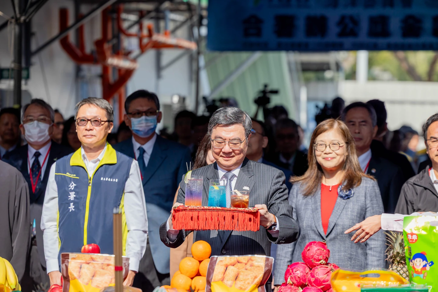 上樑典禮祈福儀式兼具隆重與創意,海委會以「躍起的大翅鯨」及「旭日上升」作為主視覺,象徵海洋強勁生命力;現場並與圓山大飯店合作推出3款海洋主題調酒「海浪」、「海風」、「海潮」作為獻禮酒,以海洋浪漫禮讚天地,也讓不少來賓驚呼連連。