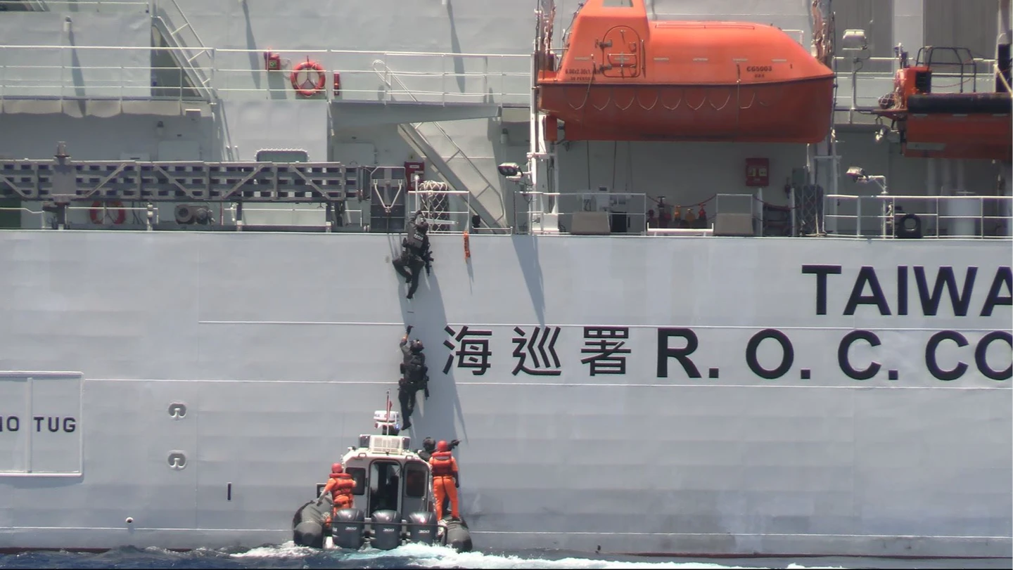 演練過程中,海巡特勤隊首度參與南沙海域聯合操演,執行高風險登檢與人員救援任務;同時運用無人機執行空中偵蒐與熱顯像搜索,迅速掌握落海人員位置並投放救生裝備;國防部也派遣C-130運輸機加入演練,執行空中支援與緊急醫療後送任務。