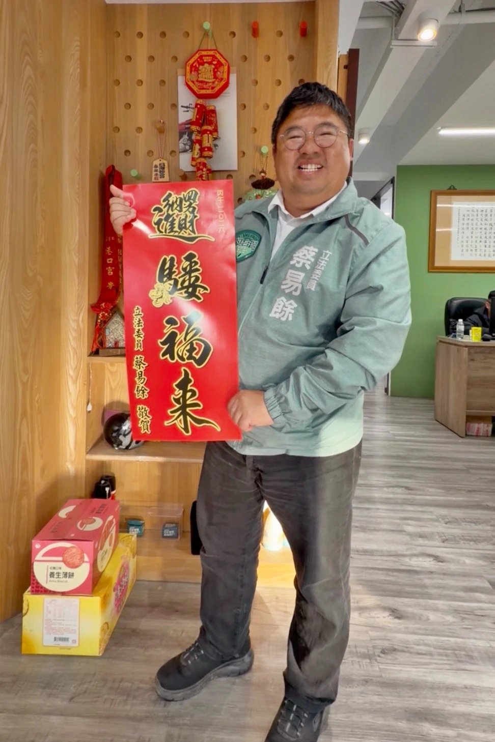 過年連假期間,蔡易餘仍把寶貴時光奉獻給鄉親,繼續全縣跑透透,深入了解地方大小事,「易心一意顧嘉義,餘裕平安過好年」,同時送上真誠祝福,希望大家在未來的一年,「工作更容易、薪水更有餘;家庭更容易、幸福更有餘」。