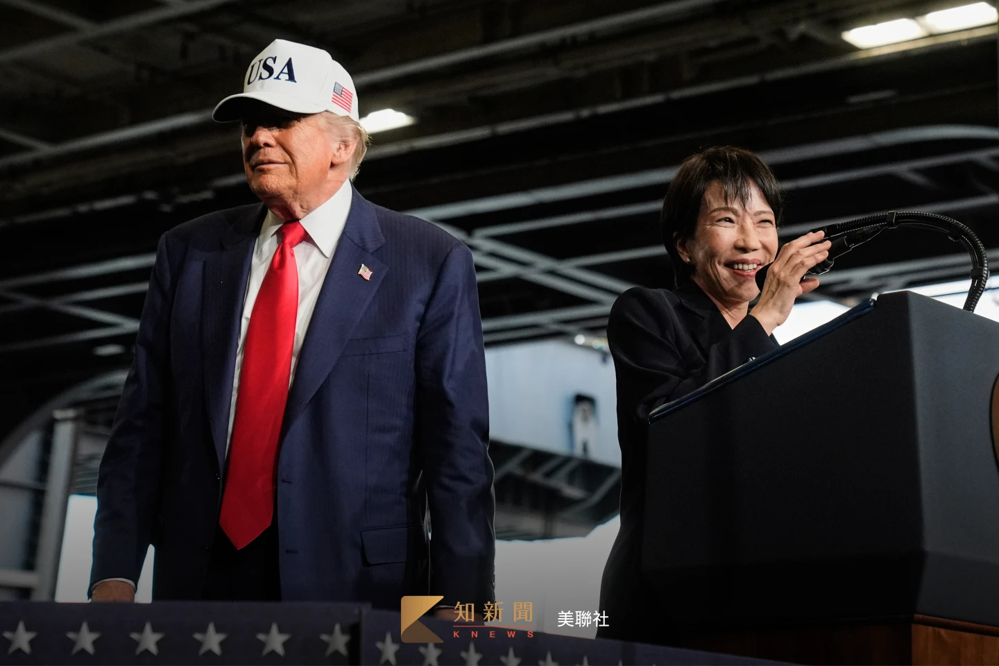圖為川普去年10月訪問日本,甫上任的高市早苗陪同造訪停泊於美國海軍基地橫須賀的「喬治華盛頓號」航空母艦,向軍方人員發表演說。美聯社