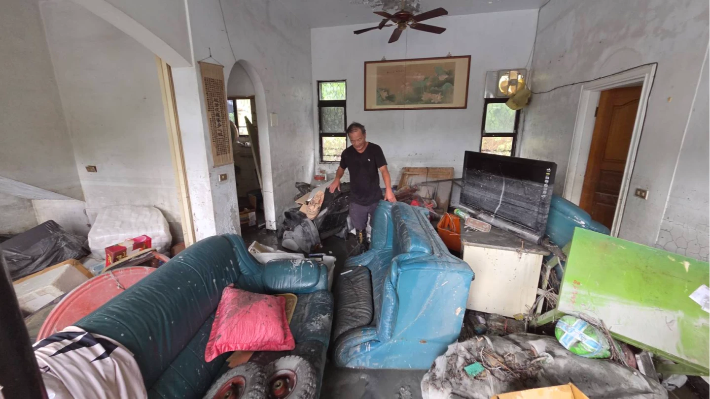 他說,在這裡住了6、70年,不曾淹到屋內,這次不只淹水還衝進住家,大概淹了2米高。