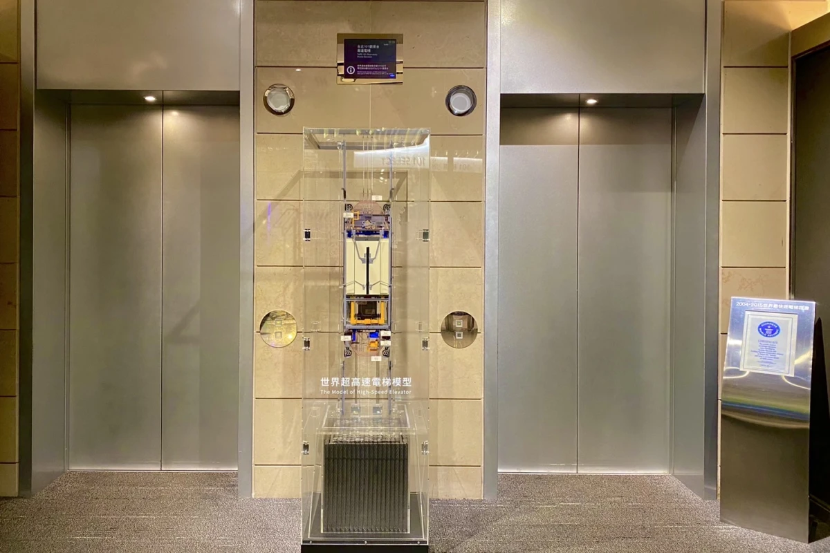 台北101觀景台配置2部超高速電梯,上升速度每分鐘可達1010公尺,相當於時速60公里。由5樓至89樓觀景台僅需37秒;電梯快速上升下降時,人體會因壓力不平衡造成耳鳴,所以2部快速電梯皆配有恆壓控制配備,讓旅客能舒適的乘坐高速電梯。