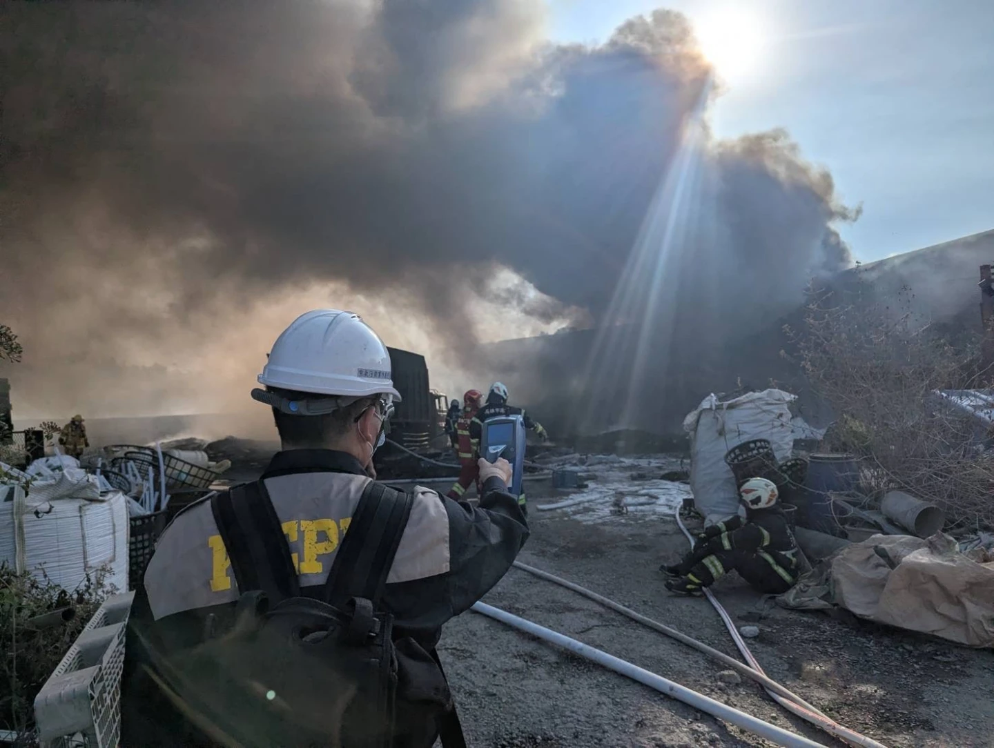 稽查人員在火警現場旁立刻量測空氣狀況,結果顯示有機氣體濃度為5.1 ppm,現場未測到一氧化碳,但空氣中的懸浮微粒偏高;相關數據已完成蒐證,後續將開罰。