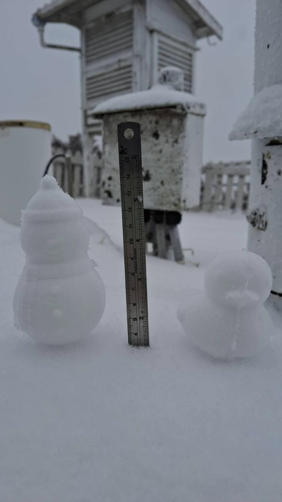 從氣象署提供的影像可看見,玉山氣象站戶外已被積雪冰封,觀測儀器也被積雪覆蓋,呈現一片雪白世界。
