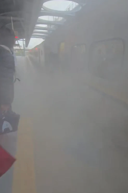 【記者盧麗蓮、陳亮諭/綜合報導】台鐵2122次區間車今(26日)上午近7時,車廂內瀰漫白煙,疑因乘客行動電源爆炸起火,列車緊急停靠豐原站的2B月台,影片一名男學生緊急持滅火器救援,該列間延誤約22分鐘,案由相關單位調查中。