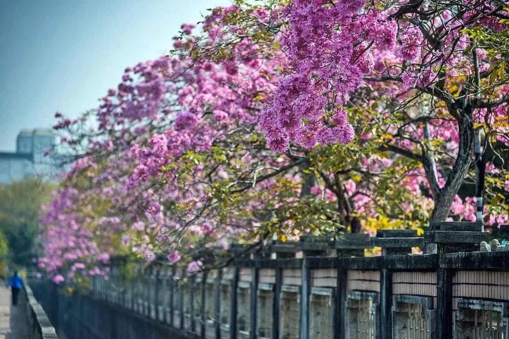 不只如此,3至4月間嘉義市區與周邊更化身花之城市,包含八掌溪堤防洋紅、黃花風鈴木連綿成夢幻隧道,北香湖公園南洋櫻染上柔美粉色,仁義潭九重葛熱情奔放,再搭配166縣道瑞里的紫藤花瀑布,春日浪漫風景層層疊疊。