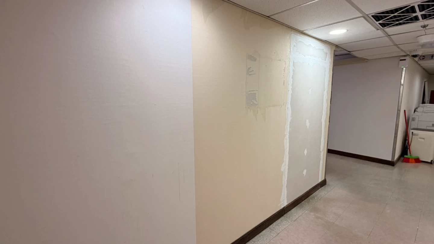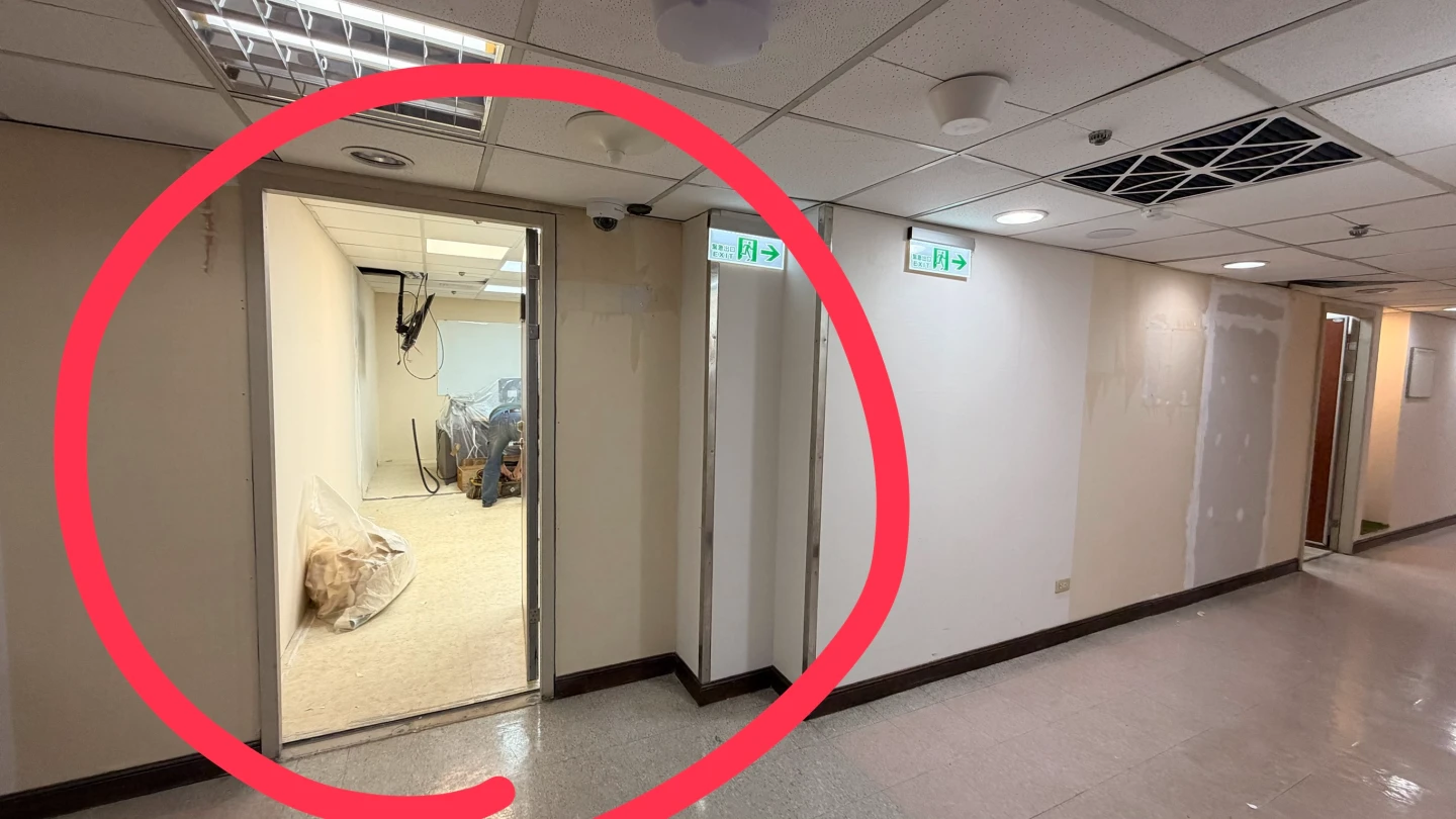 據了解,洪毓祥找來裝潢公司施工,將原本兩間辦公室的大門位置進行調整,外牆上至今仍可清楚看到原先大門痕跡。同樓層亦有辦公助理抱怨施工噪音,「很吵,都在敲敲打打」。
