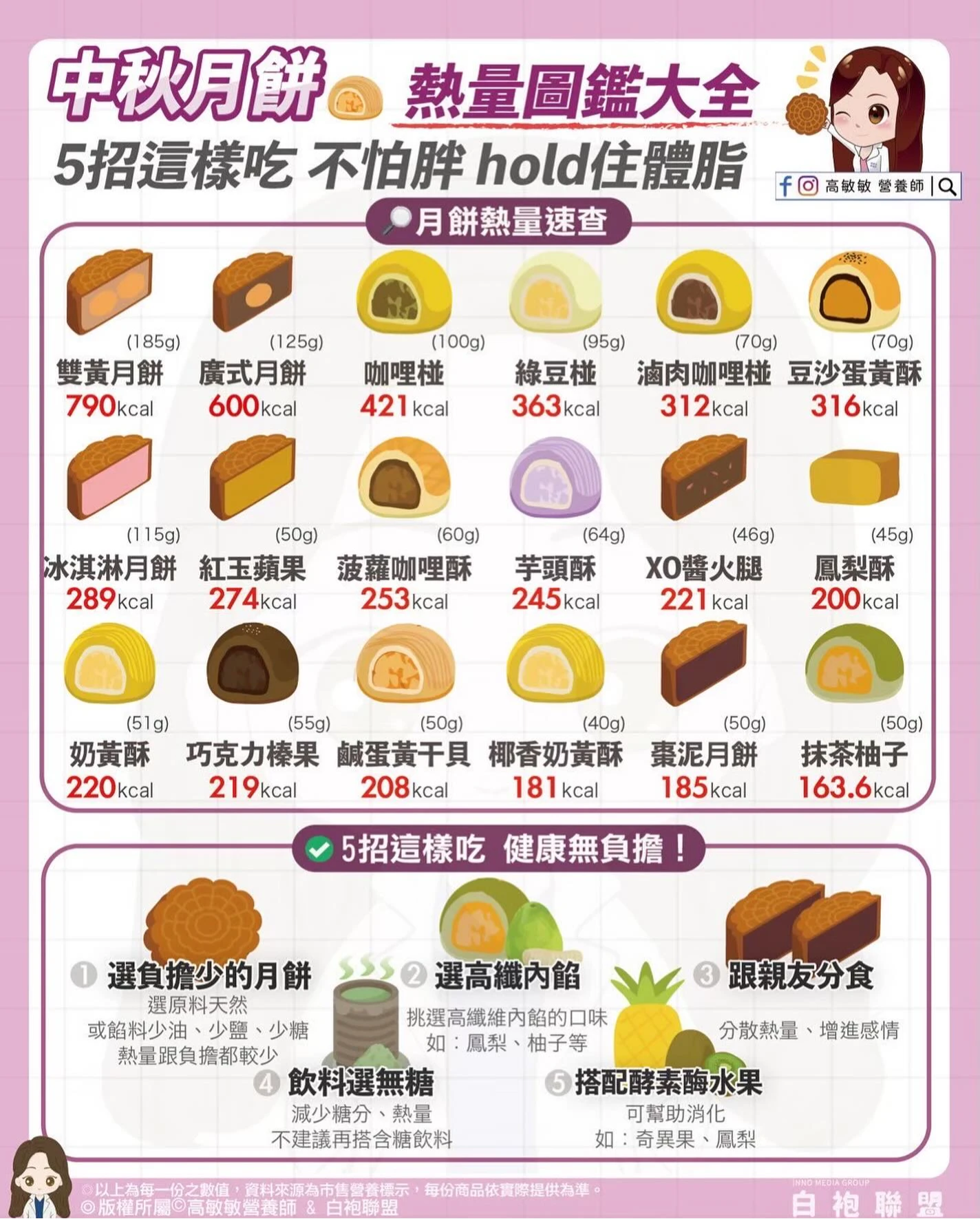 高敏敏說,月餅是因應中秋習俗的美食,「適量」才是保持健康的關鍵,列出5點建議,享受美味又不過量。