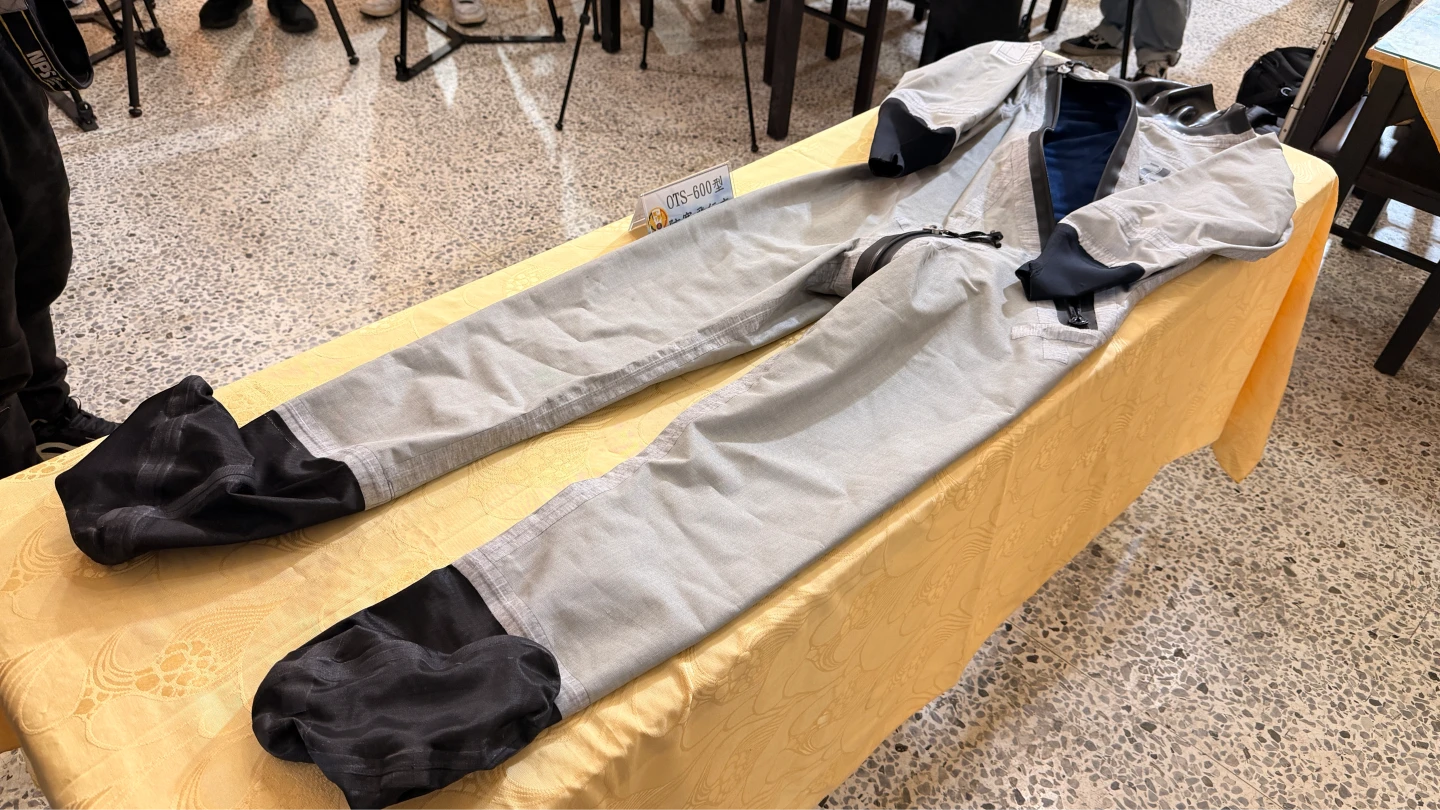 空軍第七聯隊 23 作戰隊上尉飛官鍾晉賢介紹表示,OTS-600型防寒飛行衣是當飛行員意外落海,在低溫海上待救時提供保暖效果,降低失溫風險。設計上採取連身設計,可完整包覆人體四肢跟軀幹。外層材質以防水、防火材質,胸前設有右上至左下的快速穿拉式拉鍊,方便執行飛行任務前快速著裝。
