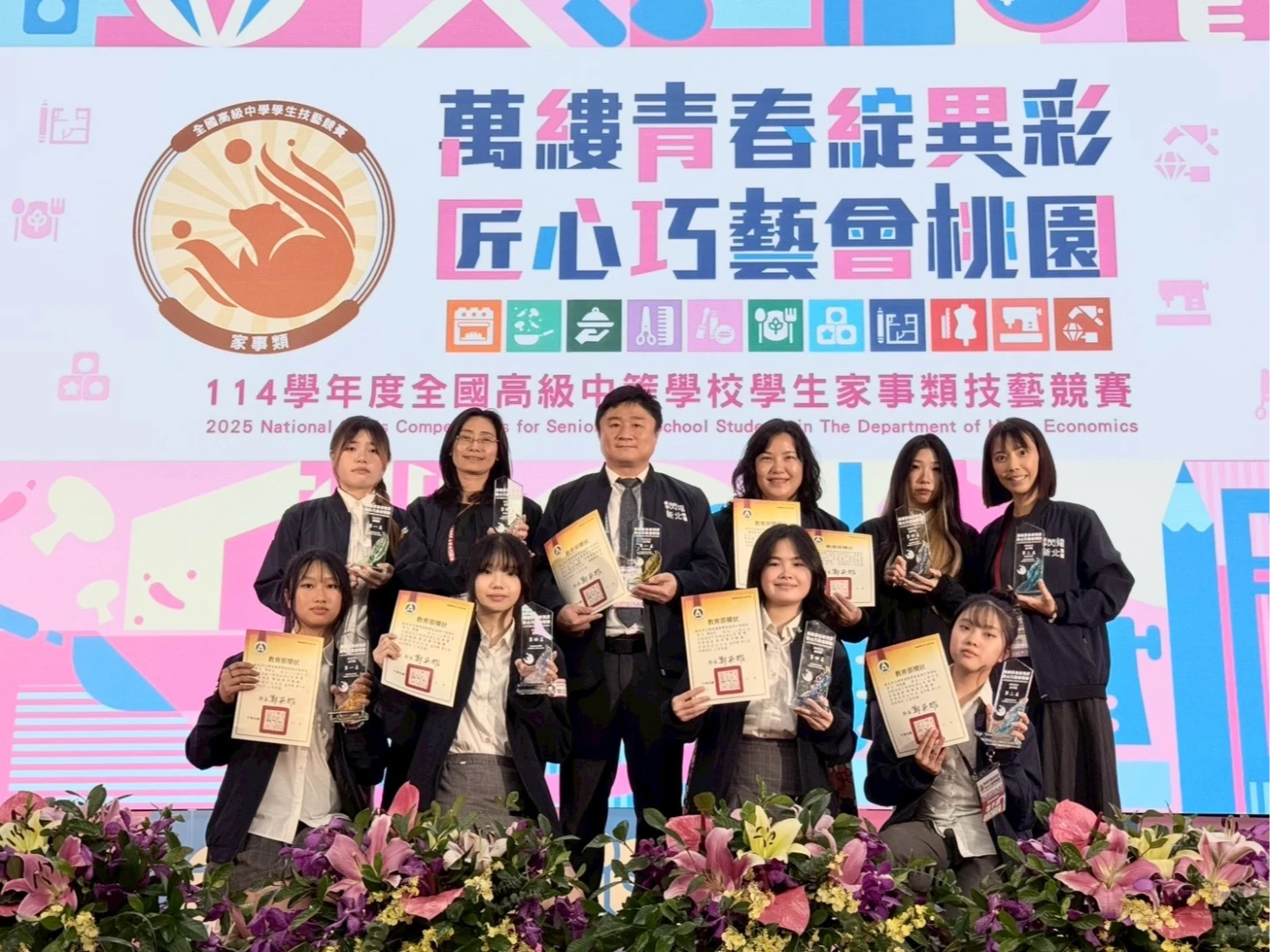 【記者曾伯愷/新北報導】「114學年度全國高級中等學校學生家事類技藝競賽」於本月15日在桃園中壢家商落幕。本屆來自全國104所學校、441位選手同場競技11個職種。今年新北市由9校組成「奪金戰隊」,一舉拿下11座金手、12位優勝,金手數量高居全國第一,展現新北技職教育全國領航實力。