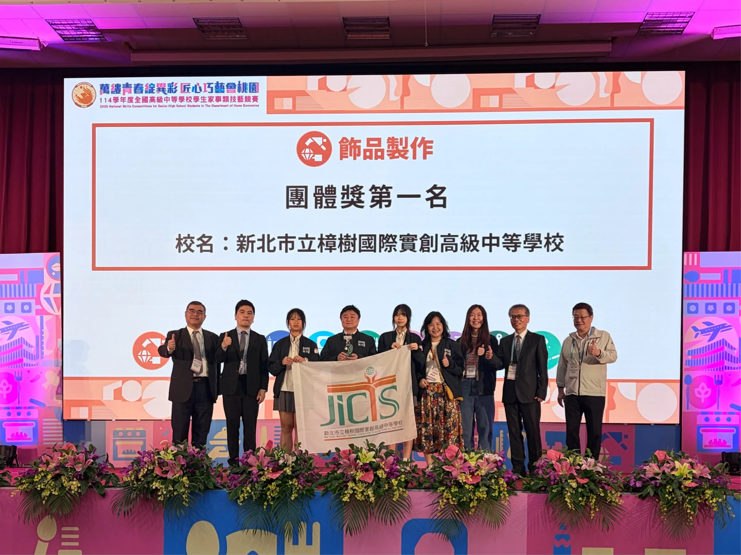 榮獲「飾品製作第一名」的樟樹國際實中同學陳韋汝分享得獎心得,她說,自己曾因為作品不如預期,而不敢再踏入選手室備賽。指導老師鄭姿蓉與戰友陳雙一路陪伴,讓她在不斷調整、練習與創作中找回信心,最終與夥伴攜手拿下個人與團體雙冠軍,為校史寫下新頁。