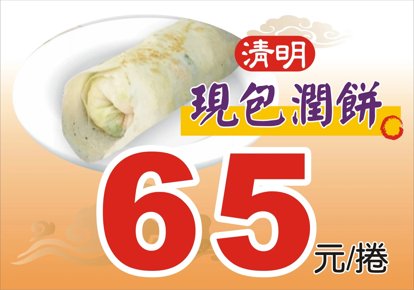 【記者劉沛妘/台北報導】今年清明連假有長達4天假期,有網友近日在家樂福量販店發現開賣「巨無霸潤餅(春捲)」,經典配料紅燒肉、豆芽菜、豆干、花生粉等通通有,售價65元。消息曝光,立刻引發討論。對此,家樂福向《知新聞》證實,潤餅為清明節季節性商品,今年每間量販店皆有販售。