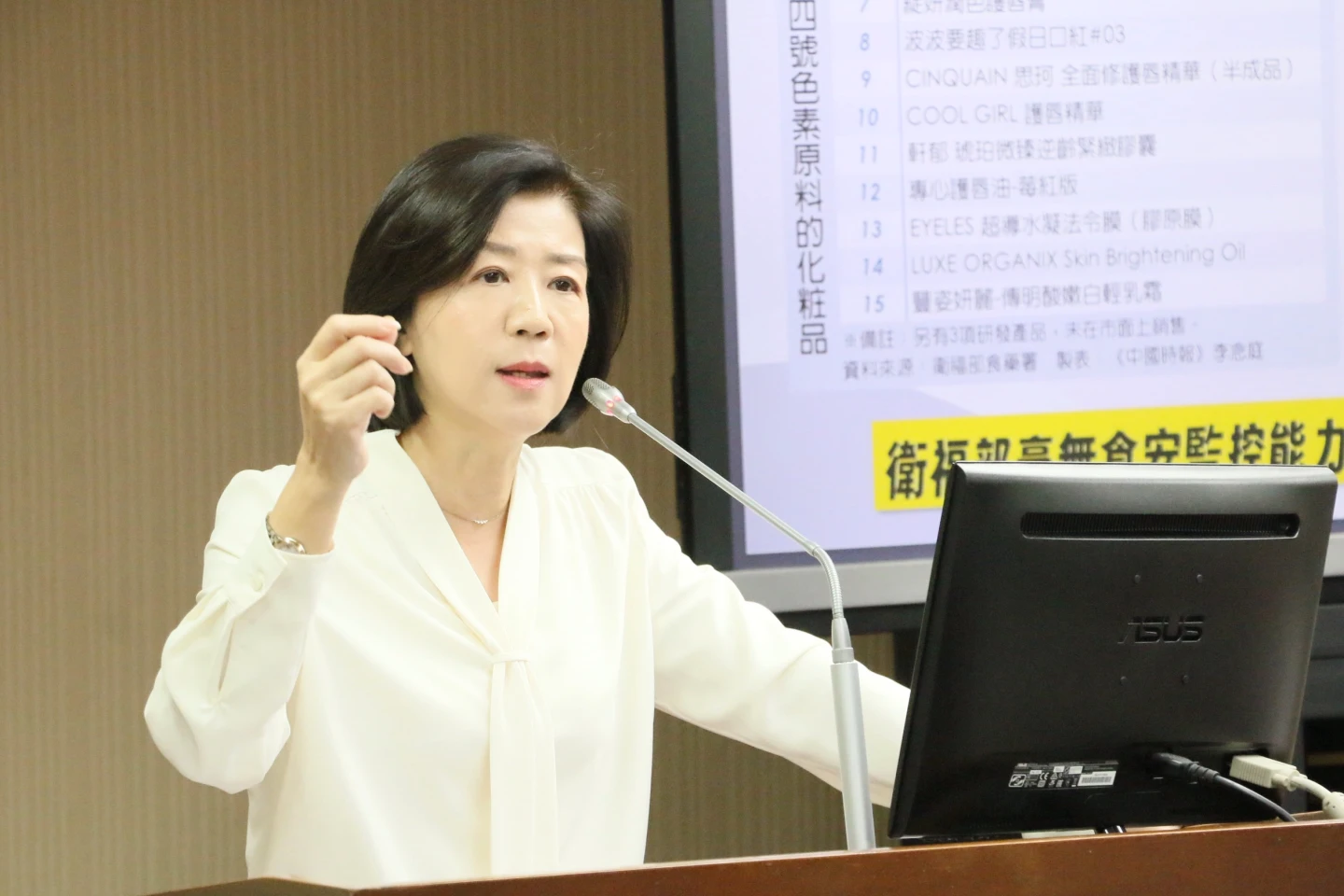 王育敏指出,今年10月底食藥署已掌握中國大陸相關訊息,卻未立即將相關原料與產品升列為「高風險品項」並逐批檢驗,也未同步追查流向,明顯造成防堵落差,而《化妝品管理法》未明文要求業者必須送驗原料、半成品或成品,原料安全評估更由業者自行或委外辦理,「完全以業者自律作為把關基礎,對消費者非常沒有保障」,呼籲衛福部比照《食安法》第七條,補上管理所需的法源與拘束力。