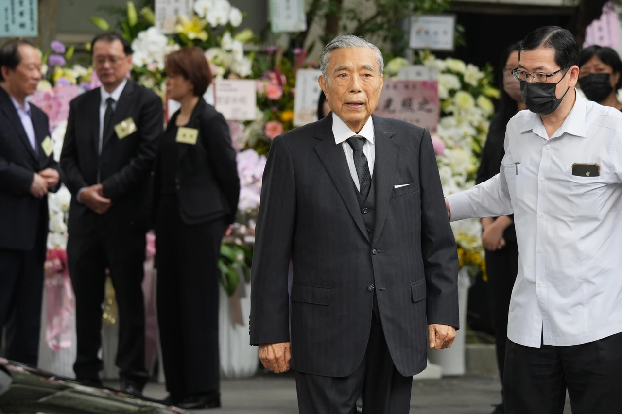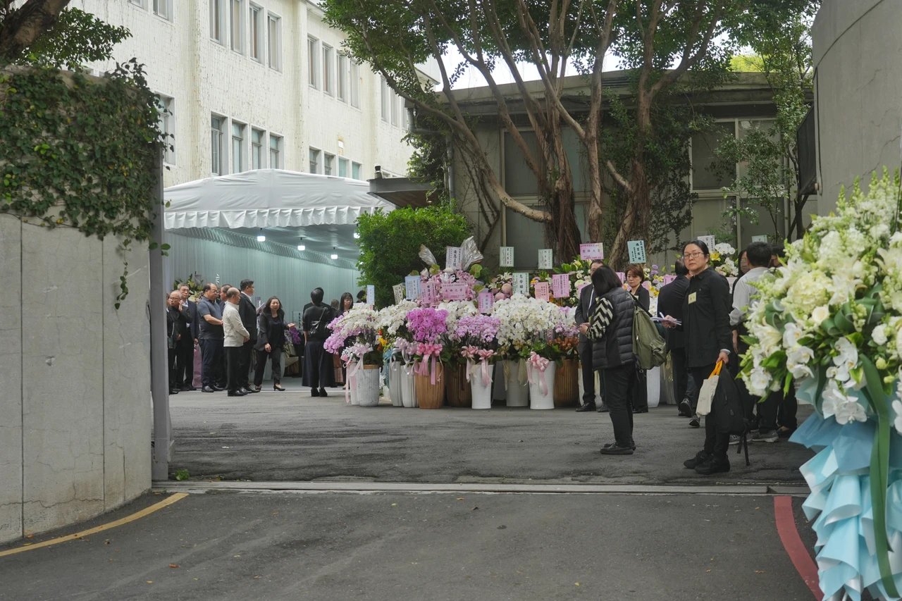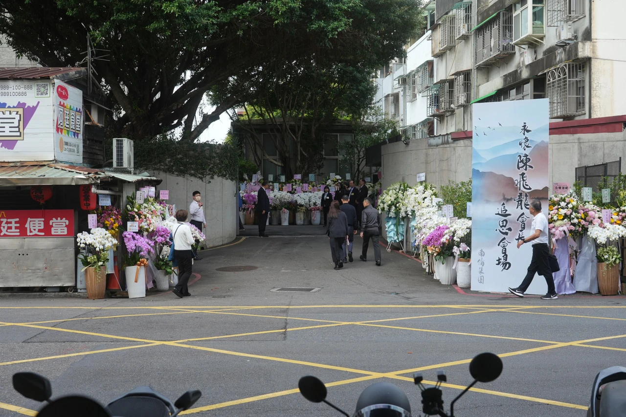 陳飛龍(右)過世享耆壽90歲,追思會現場堆滿花籃。李柏毅攝 zoomin