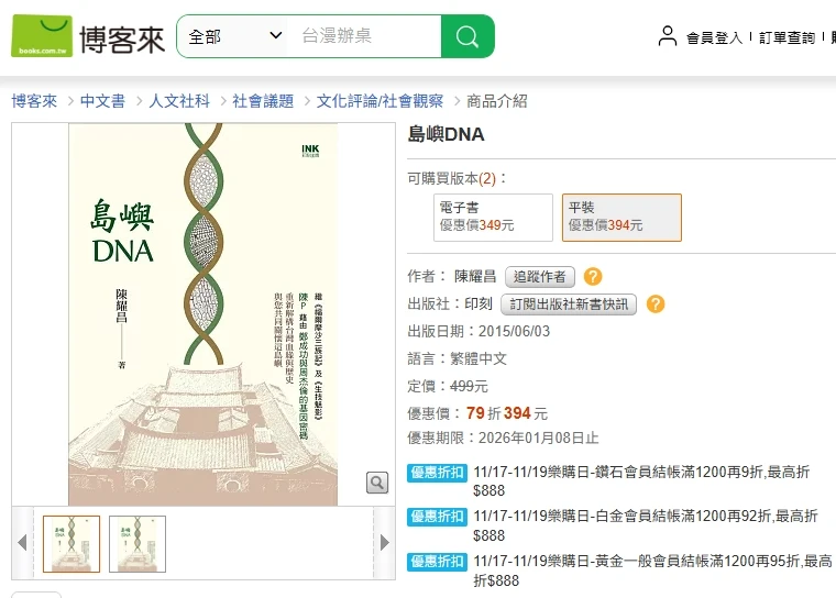 博客來網路書城販售其著作《島嶼DNA》,藉由鄭成功與周杰倫的基因密碼重新解構台灣血緣與歷史,博客來轉載陳耀昌曾在《財訊》雜誌發表文章,周杰倫當年不用當兵,因為他患有「僵直性脊椎炎」,推測他應該有個 HLA-B27 基因,該基因幾乎是診斷僵直性脊椎炎的唯一標準,「大膽臆測他的祖先中有白人或原住民血統,因為他出身淡水。這一帶在十七世紀前期西班牙人和荷蘭人前後統治了三十多年」。