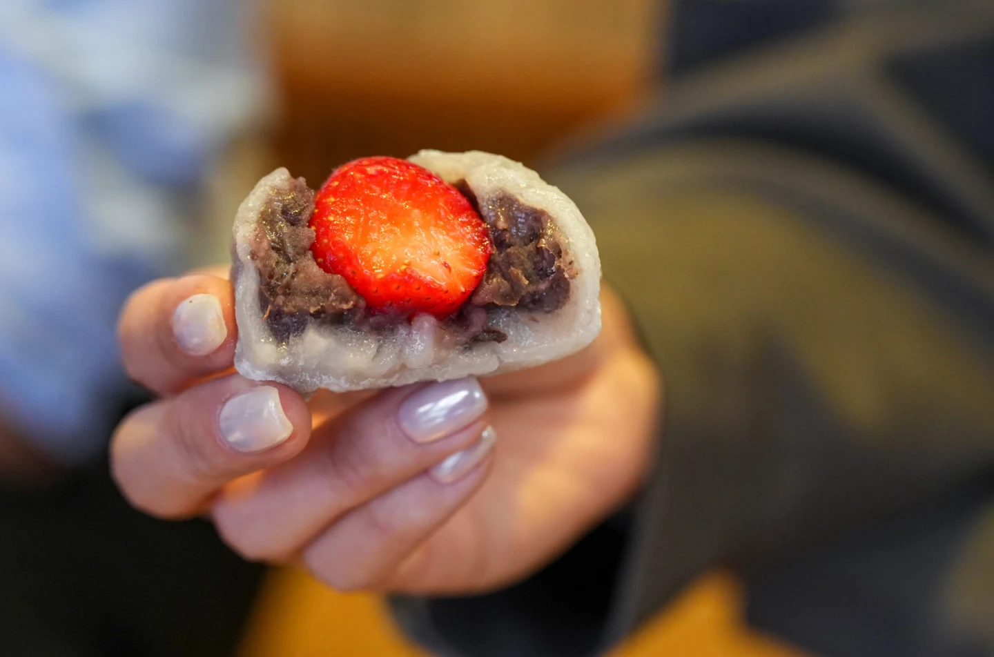 壓軸站來到知名的「滋養和菓子」,冬季限定草莓大福外皮選用台東糯米製作,軟Q細緻、幾乎沒有粉感;內餡是屏東紅豆粒餡,甜度適中、口感綿密,再搭配苗栗草莓,一口咬下,糯米香、豆香與草莓果酸交織,層次分明卻又和諧。