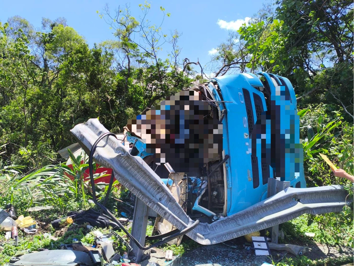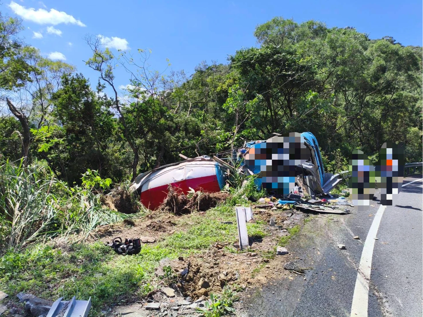 國三甲重大車禍!水泥車翻落邊坡 車頭全毀駕駛亡