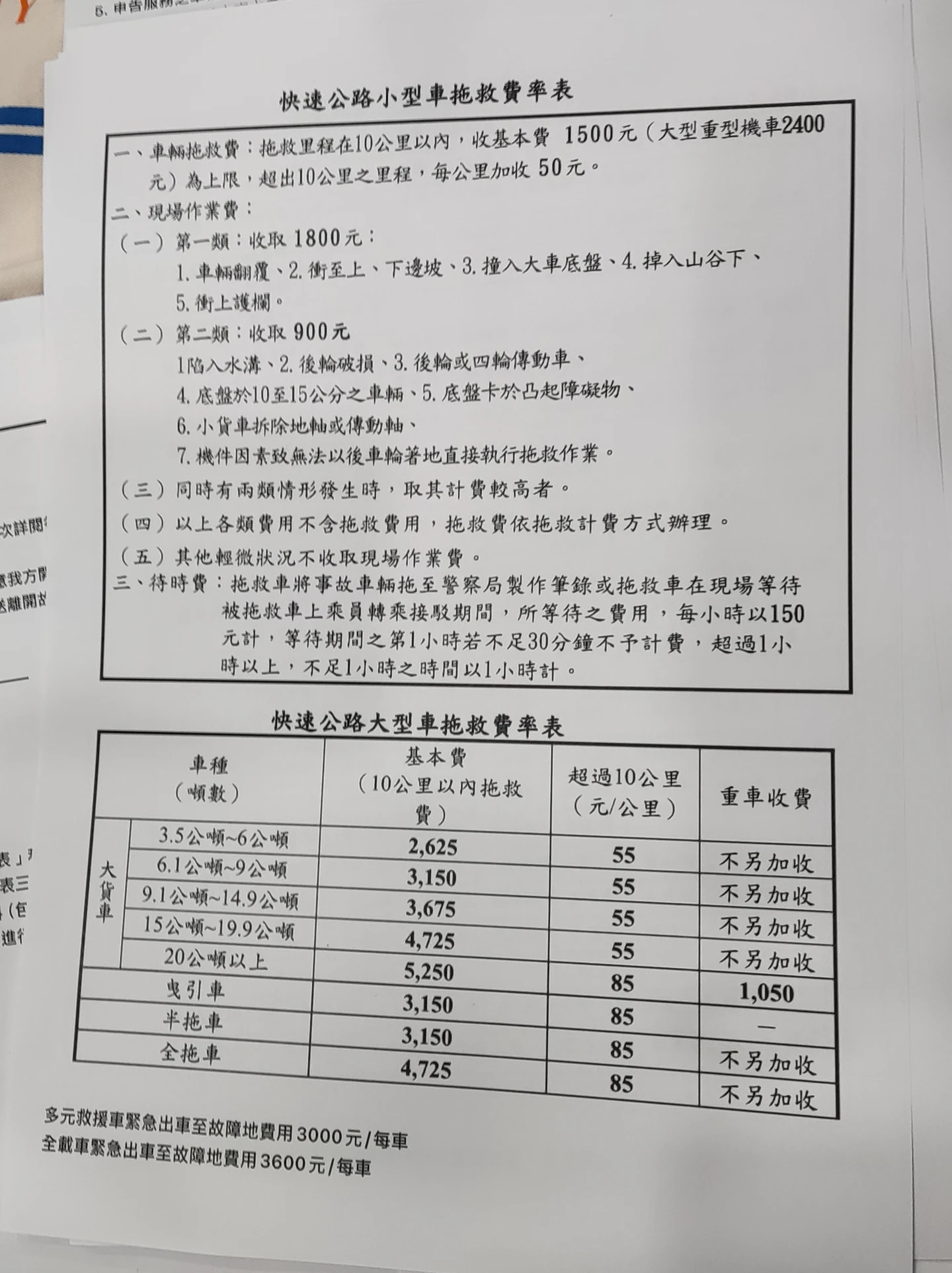 據指出,根據集團的快速公路小型車拖救費率表顯示,拖救費10公里內,小型車基本收費1500元、大型重機2400元,每公里加收50元;現場作業費從900元至1800不等,另收待時費,每小時150元。等民眾不察收到報價單,才驚覺一切都是騙局。