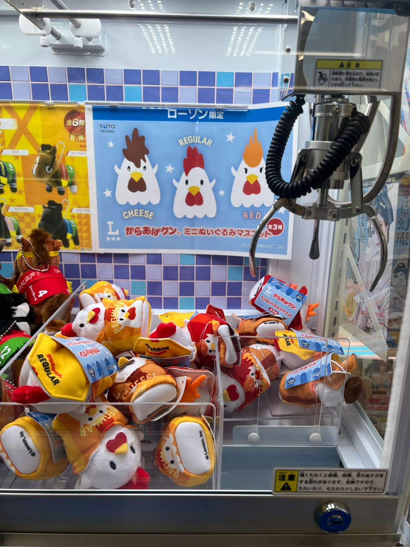 全家的夾娃娃機玩1次要100日圓(約20台幣),裡頭的獎品大多是全球知名卡通角色。負責人表示,不同於扭蛋機只要投錢就有一定有扭蛋拿,玩夾娃娃機時不知道自己夾不夾得到東西的懸疑感,也是樂趣所在。