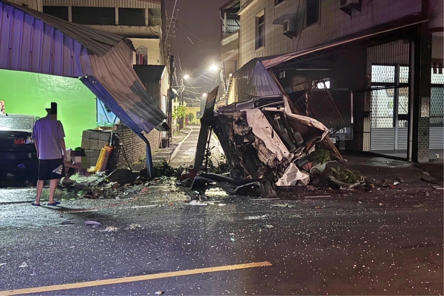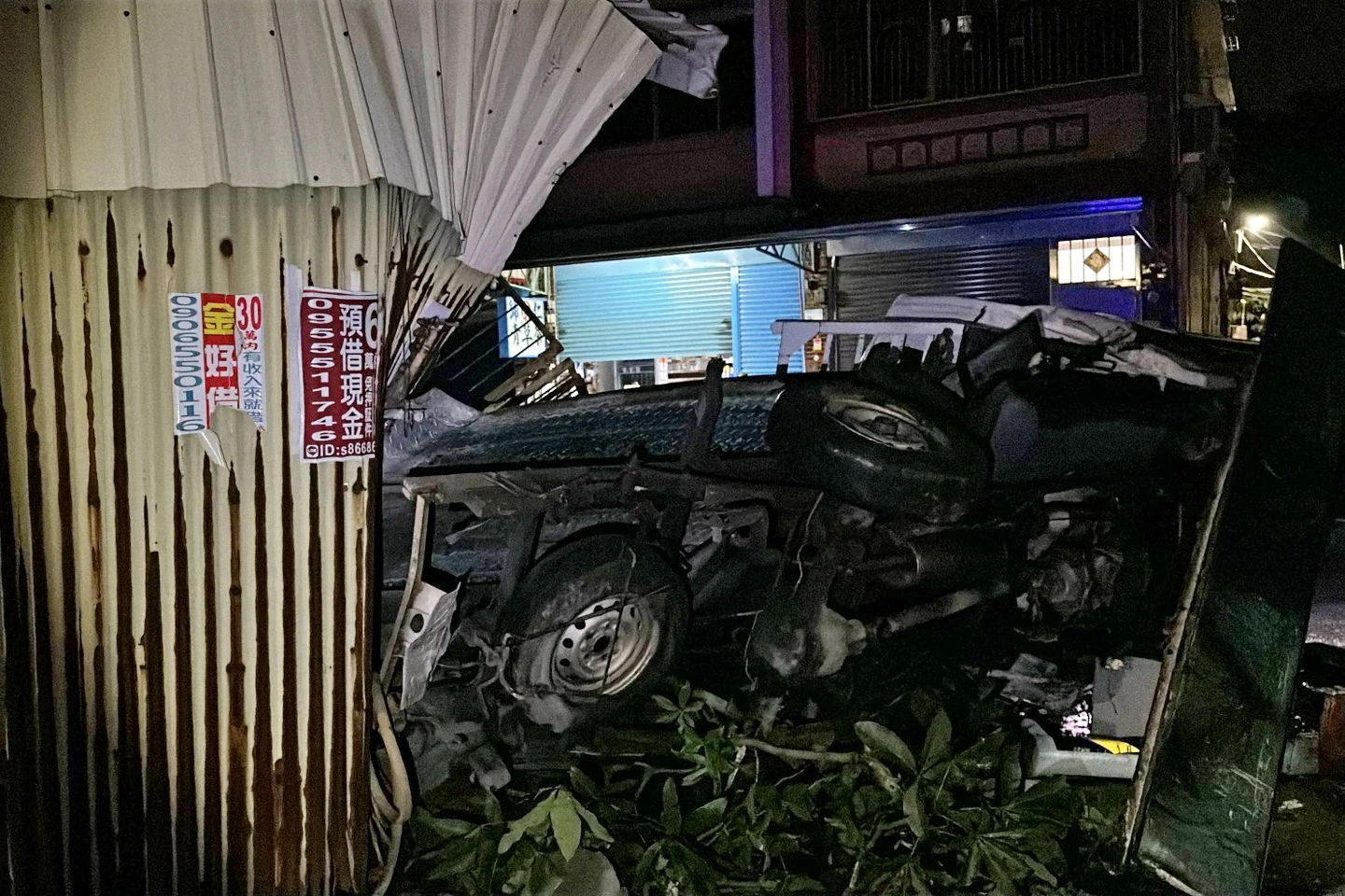 據查,今天凌晨2點4分許,屏東市歸仁路突然傳出好幾聲巨響,附近民眾睡夢中驚醒,連忙出門查看,赫見1輛拖板車竟沿途衝撞,有民宅圍牆破洞、鐵皮掀起,還有好幾輛車被撞到東倒西歪,其中有部小貨車側翻、嚴重凹陷,宛如廢鐵,現場滿目瘡痍。