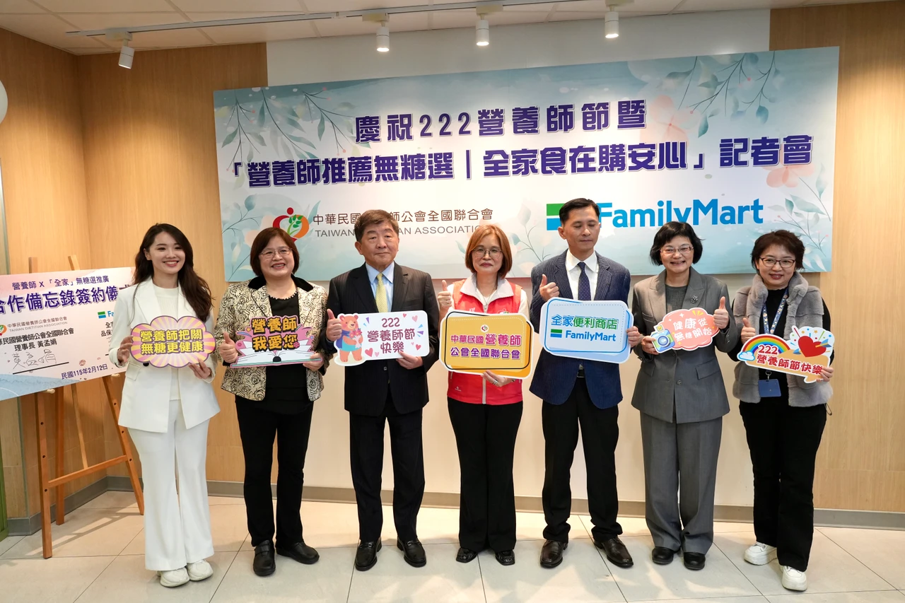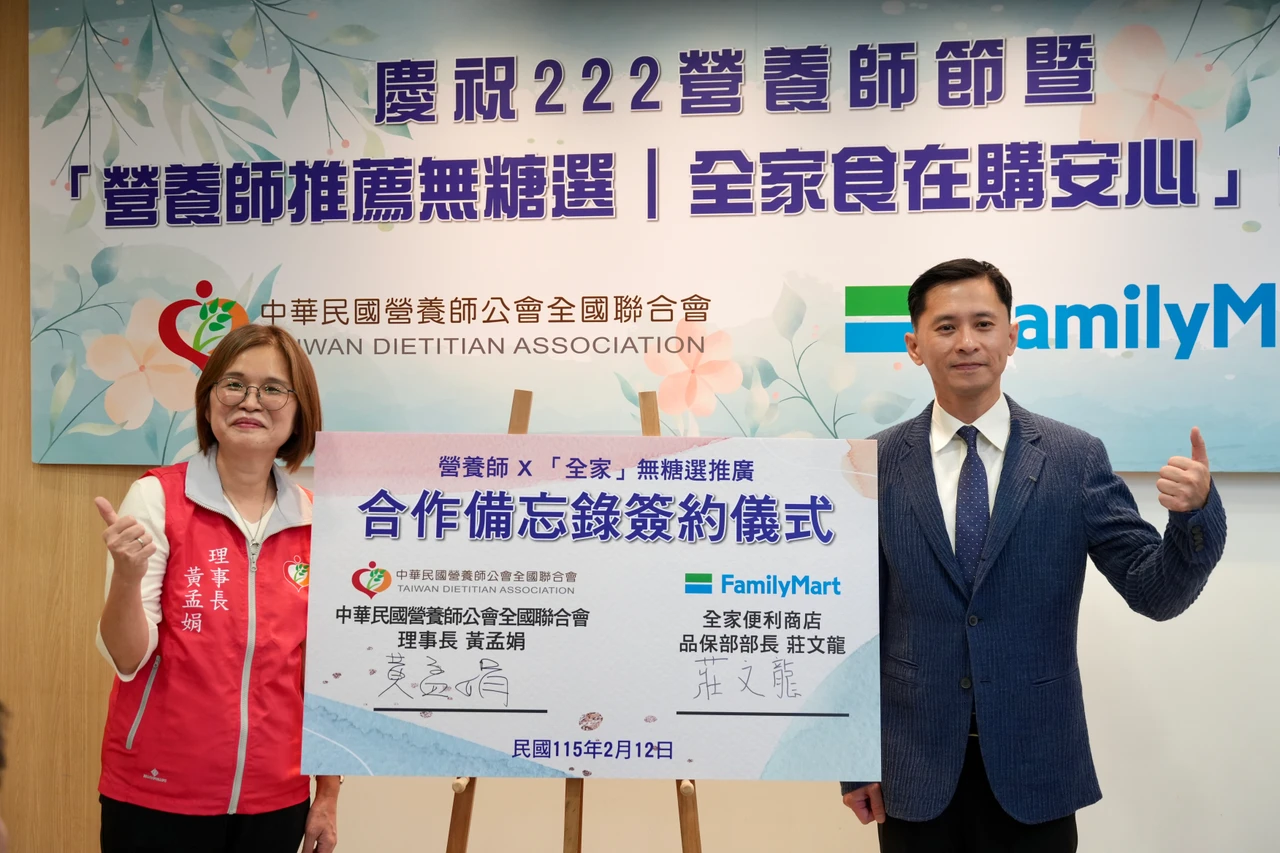 營養師公會全國聯合會與全家便利商店,今(12)日在記者會現場,簽署「營養師x全家無糖選推廣」合作備忘錄。