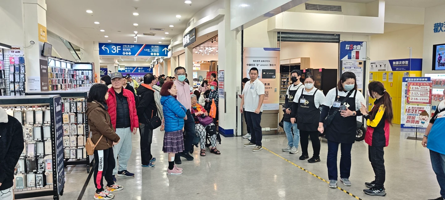 家樂福表示,今日開賣1萬5千個福袋,上午10點開賣,大約8點左右開始排隊,24小時店更早,大約7點多就有民眾卡位,每間店都超過60位以上客人,甚至有百人來排隊。