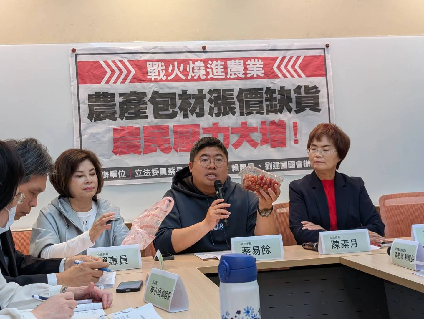 蔡易餘表示,戰爭照道理不會導致農業包材、醫院藥品包裝馬上缺貨,怎麼才3個禮拜就出現缺貨,很明顯有人囤積、不釋出,馬上衝擊價格上升,農民買不到包材,個別詢價就是被大削一筆,越基層的人越吃虧。